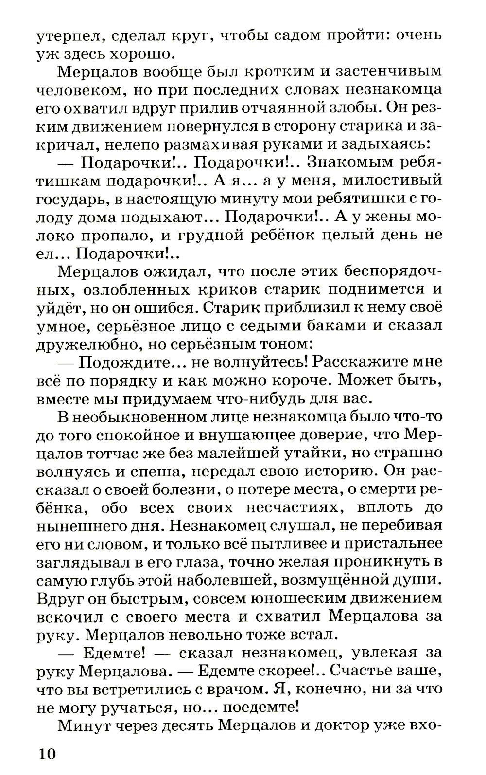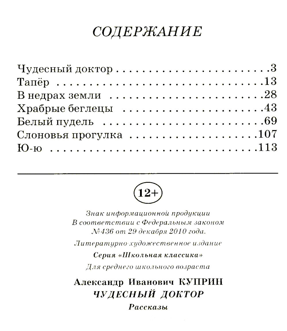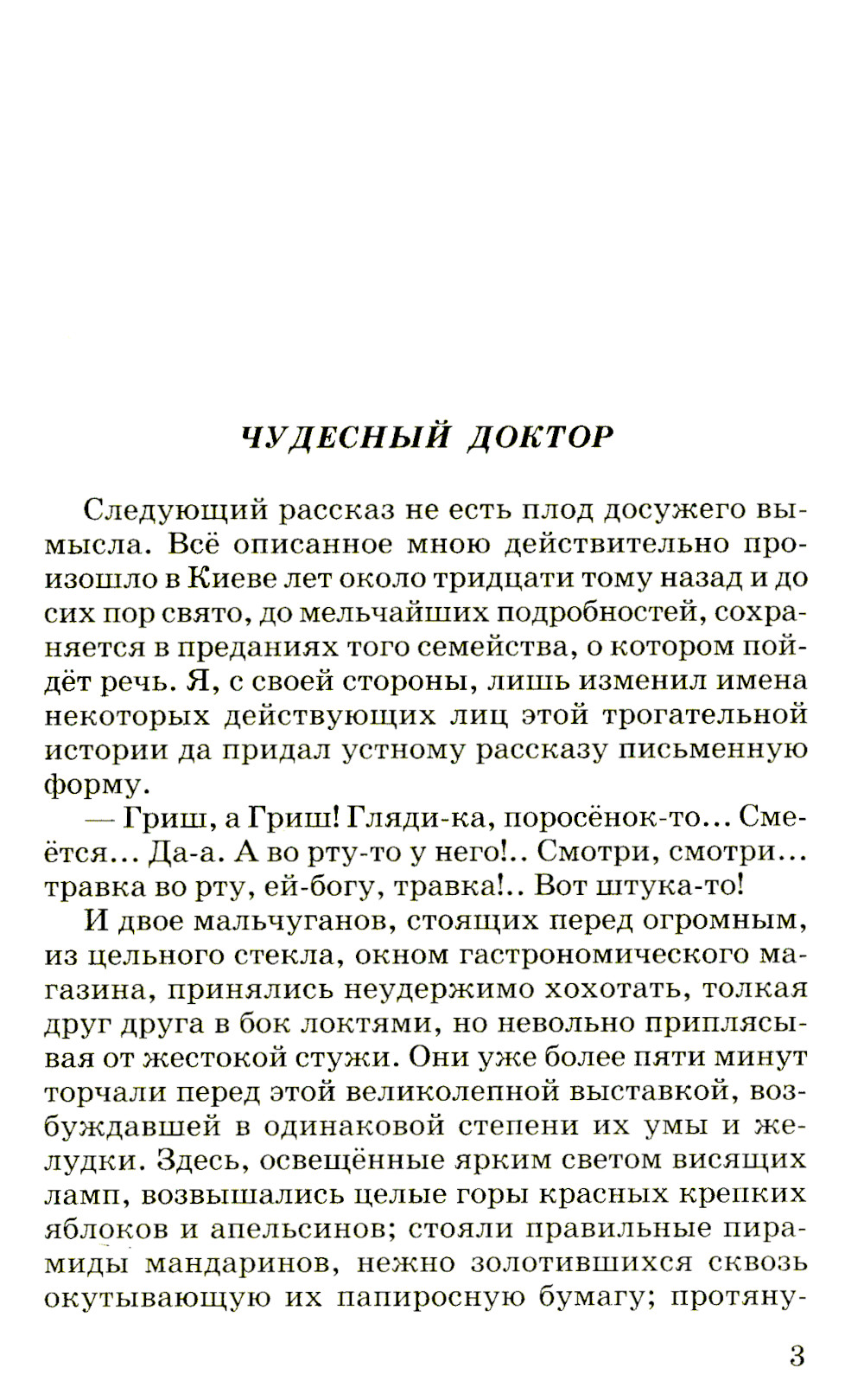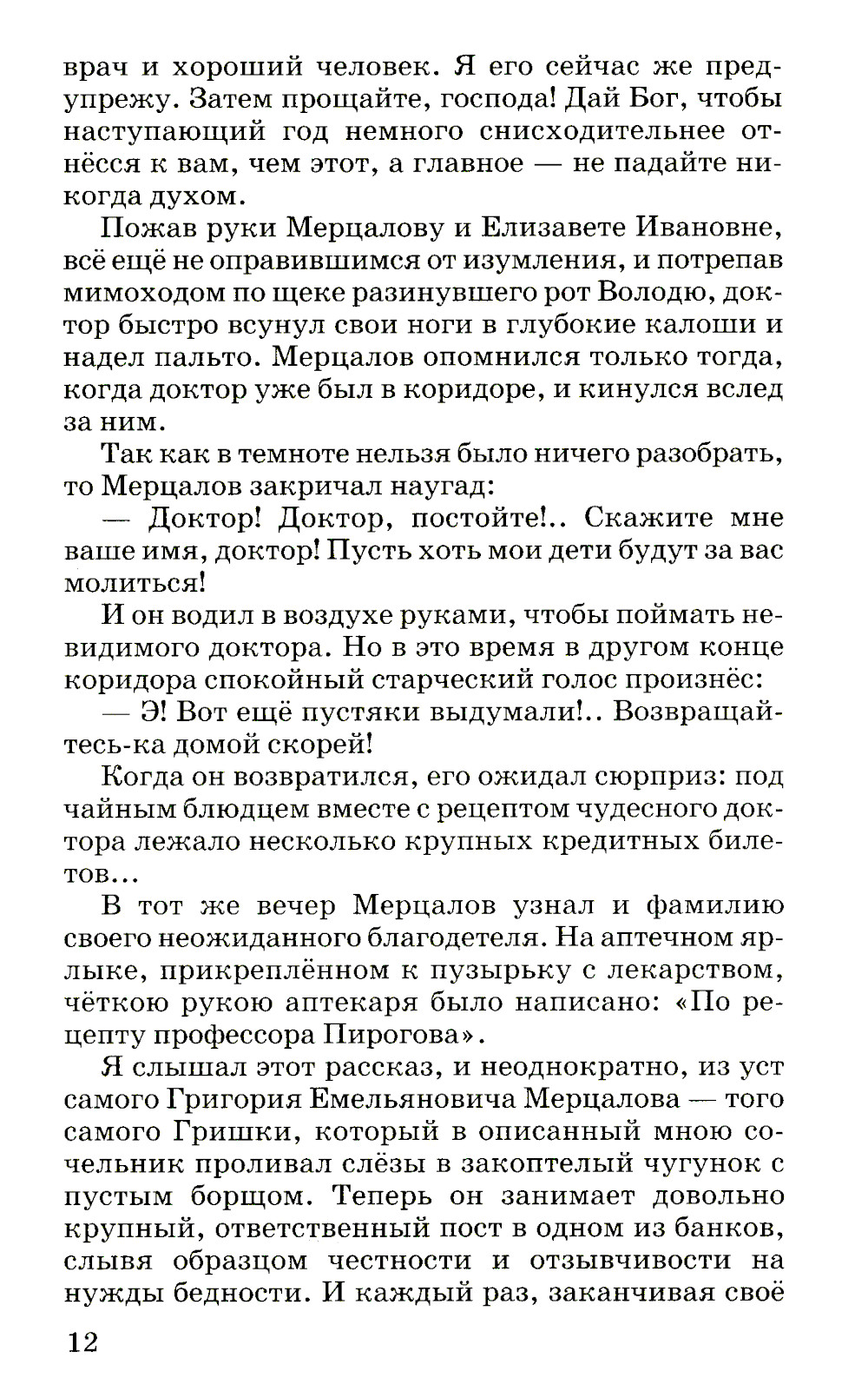 «Чудесный доктор» (1897) - «святочный рассказ», основанный, тем не менее, на реальных событиях. Бедные люди попали в безвыходное, казалось бы, положение: отец семейства после продолжительной болезни потерял работу, денег нет, дети голодают и болеют... Но появляется «чудесный доктор» - и жизнь налаживается. Этим творцом чуда оказывается знаменитый хирург, профессор Николай Иванович Пирогов.