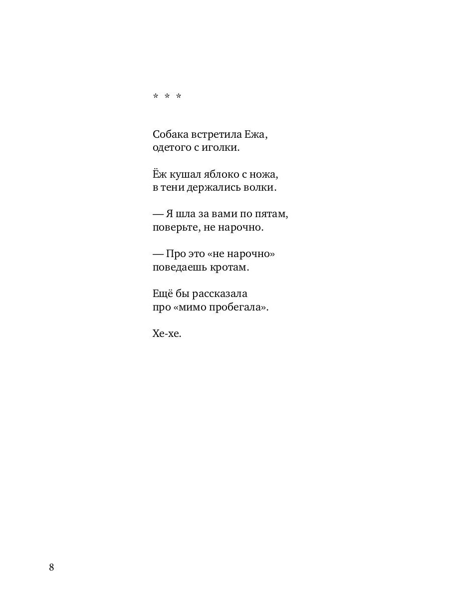 Сборник стихов российского поэта Дмитрия Смагина - метафизическое путешествие маленького человека по большому лесу, в котором он внимателен и чуток к каждому движению и вступает в диалог со всеми его обитателями, встреченными на пути. Автор словно приглашает читателей взять пример с яблока - того, что в одном из его стихотворений висит вниз головой и смотрит на дом, стоящий на трубе на облаке дыма, - и взглянуть на мир под другим углом, чтобы наконец заметить: из маленьких, кажущихся незначительными событий и складывается наша жизнь.| Издательство | Т8 RUGRAM |