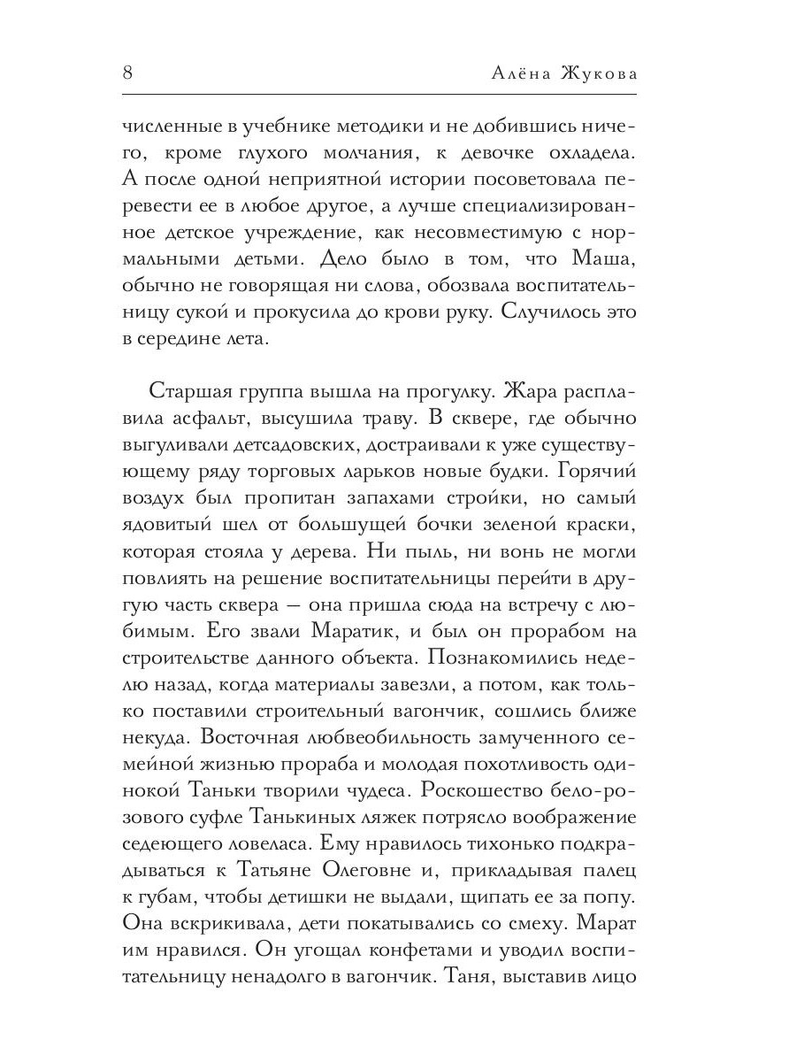 В книге Алёны Жуковой соединяются восторг и ужас, нежность и жестокость, чудесное и обыденное, миф и документ. Потому что пишет она сказки. Для взрослых. Точнее - для внутреннего ребенка, который есть в любом из нас. Каждая сказка - роман в миниатюре, короткометражный фильм. «Они спустились к Рождеству» - о том, как два ангела, черный и белый, состязаются в борьбе за жизнь рыженькой официантки. «Два кольца, два конца» - о ржавых ножницах, изменивших жизнь одинокой женщины, от которой один за другим ушли муж, дочь и кошка. «Диван» - о судьбоносной подсказке советского дивана оператору Алешке Маркину, переехавшему в Канаду... Все истории Алёны Жуковой держатся на образе, потому что внутри него как раз и сконцентрирована та поэзия, без которой настоящая проза немыслима.| Издательство | Т8 RUGRAM |