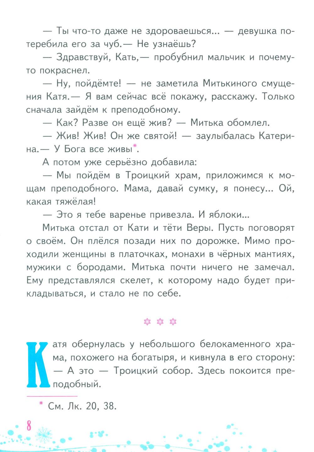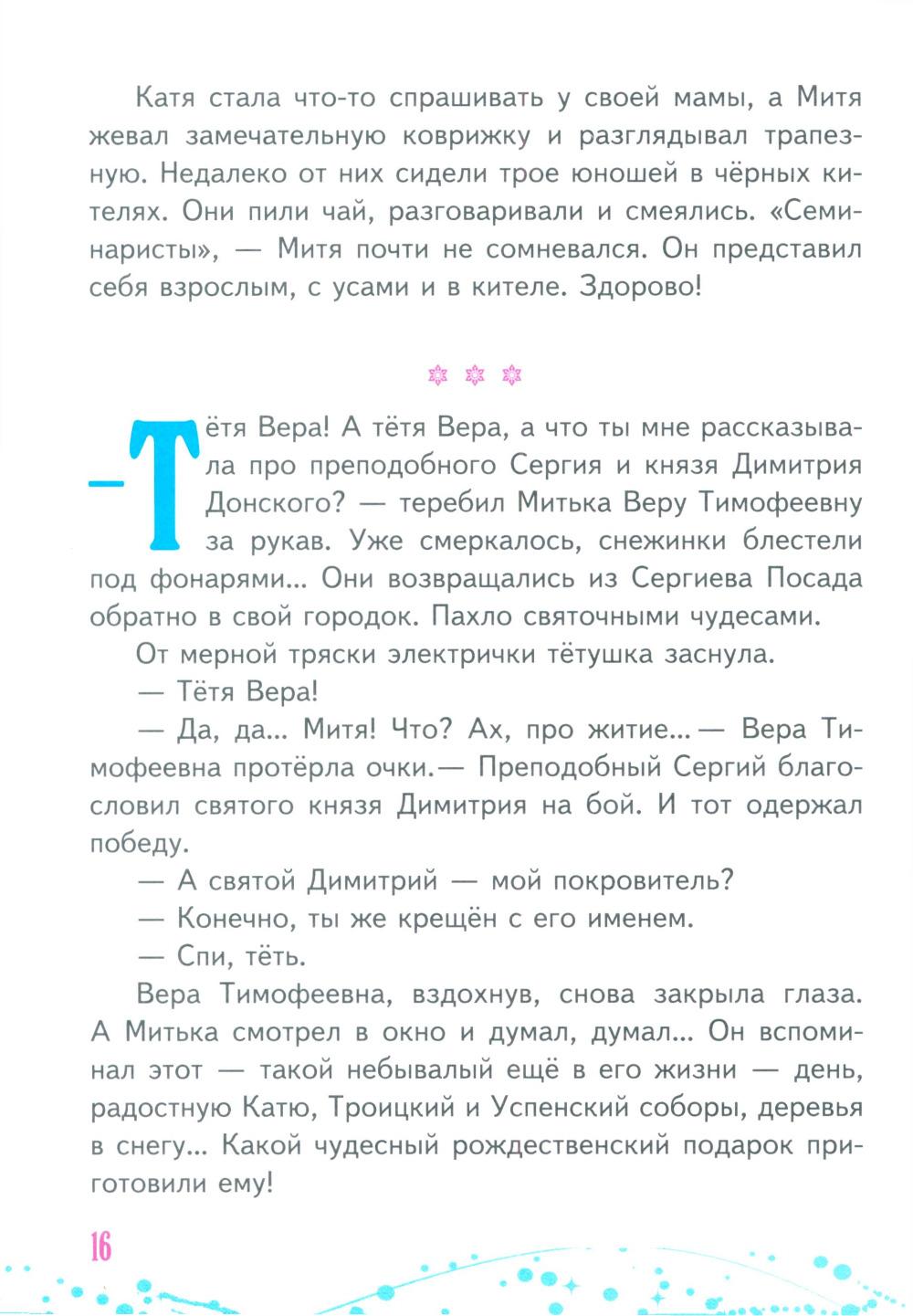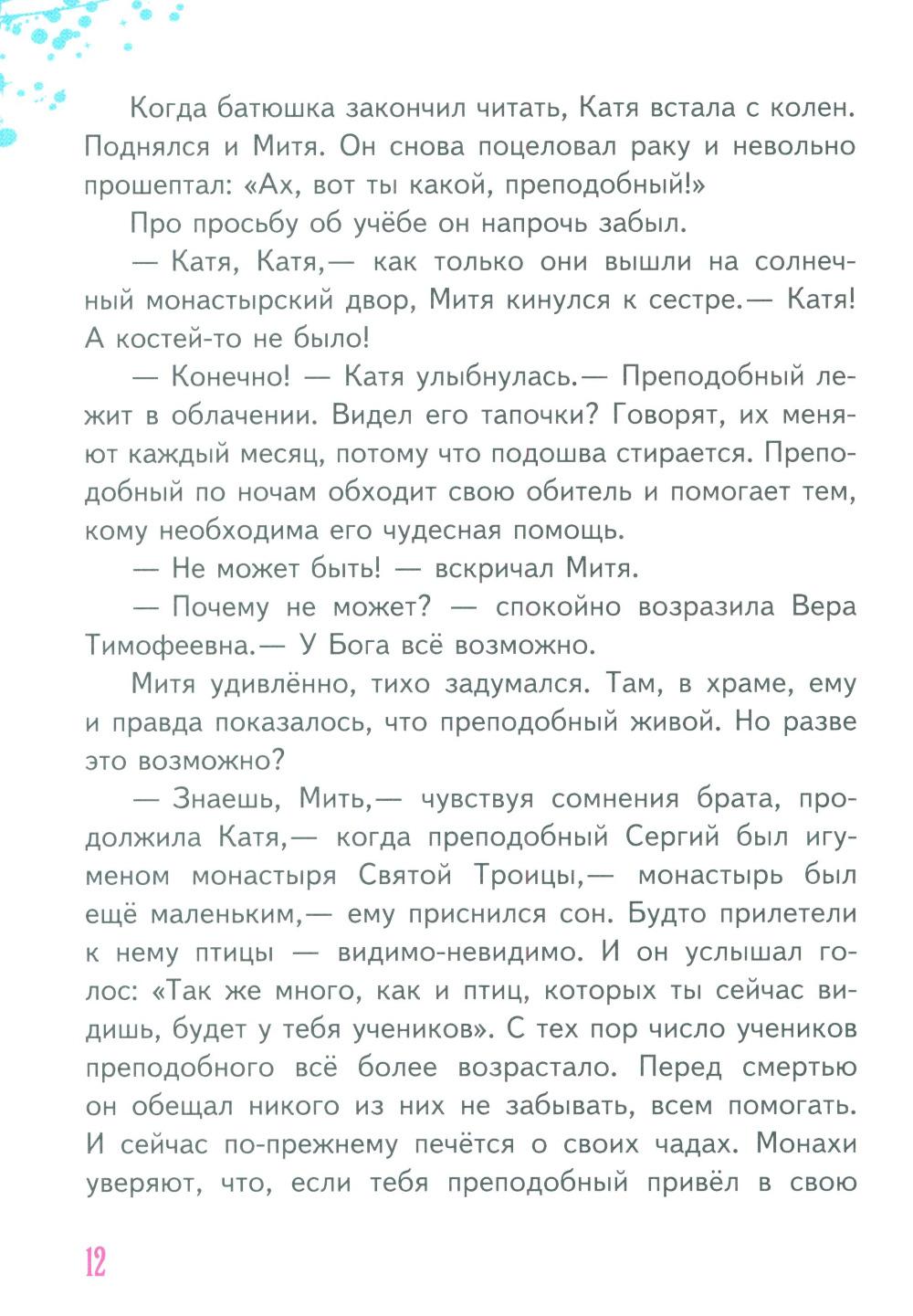 Прочитав эту книжку, вы познакомитесь со святыми - преподобным Сергием Радонежским, апостолом Матфеем, праведным царём Фульвианом и великим святителем Василием. Они присутствуют в жизни обычных девчонок и мальчишек - может быть, твоих ровесников и соседей.| Издательство | Пр.храма Св.Духа сошествия на Лазаревском кладбище |