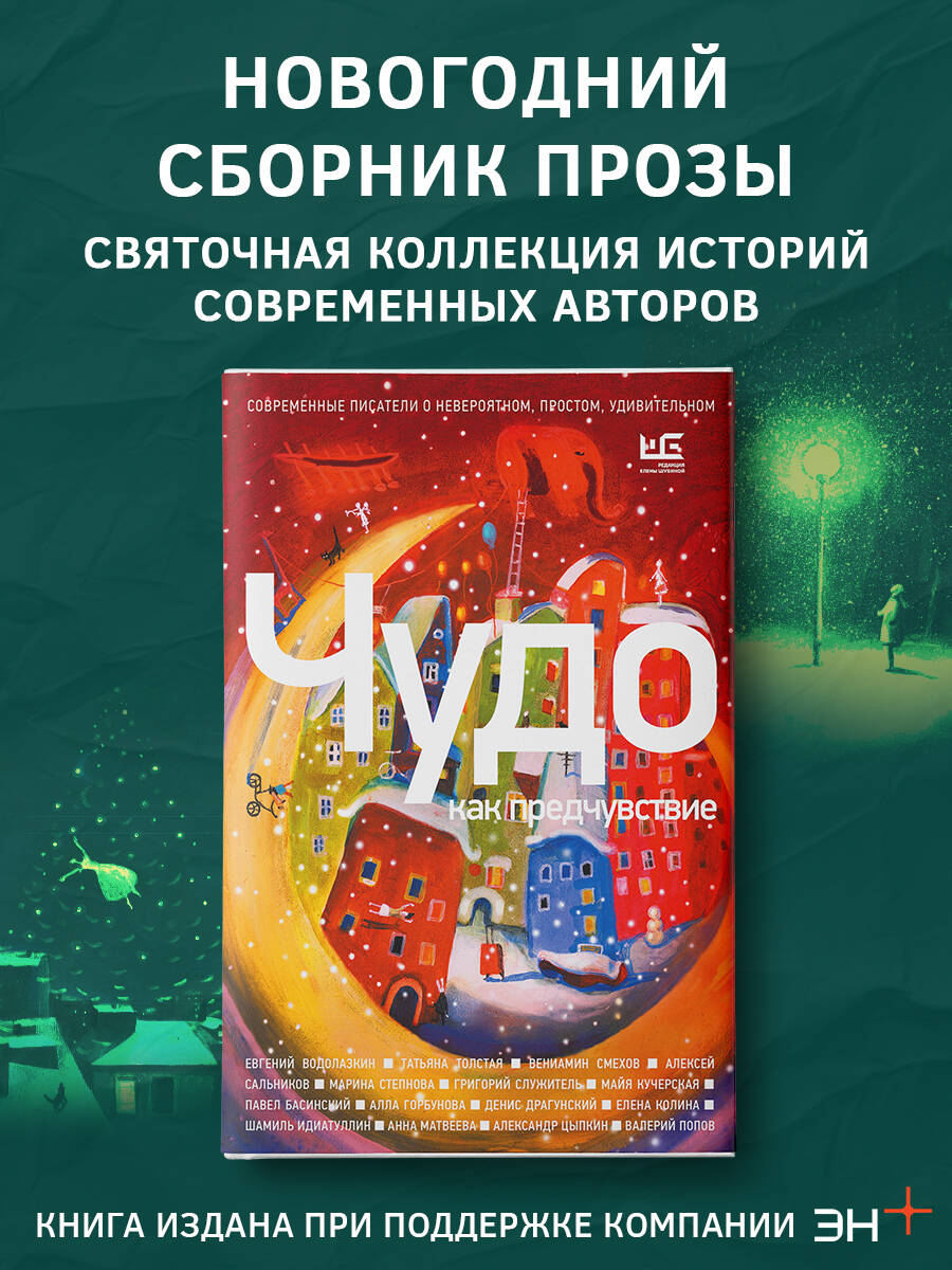 "Чудо как предчувствие" - сборник рассказов и эссе современных авторов. Евгений Водолазкин, Татьяна Толстая, Алексей Сальников, Марина Степнова, Александр Цыпкин, Григорий Служитель, Майя Кучерская, Павел Басинский, Алла Горбунова, Денис Драгунский, Елена Колина, Шамиль Идиатуллин, Анна Матвеева, Вениамин Смехов и Валерий Попов пишут о чудесах, повседневных и рождественских, простых и невероятных, немыслимых, но свершившихся. Ощущение предстоящего праздника, тепла, уюта и света - как в детстве, когда мы все верили в чудо. Иллюстрации Саши Николаенко. Автор идеи Анна Попова. Редактор-составитель Вероника Дмитриева. Книга издана при поддержке компании "Эн+".| Издательство | Издательство "АСТ" |