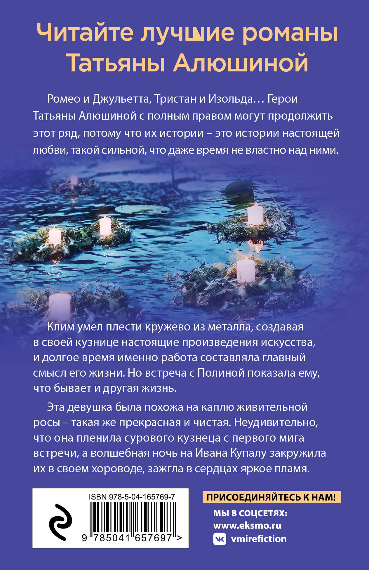 Романы Татьяны Алюшиной давно заслужили признание читательниц по всей стране, а тиражи ее книг насчитывают более пяти миллионов экземпляров. Захватывающие сюжеты, незабываемые чувства, подлинная страсть - ее книги читаются на одном дыхании, а истории главных героинь трогают сердца и снова помогают поверить в любовь! Клим умел плести кружево из металла, создавая в своей кузнице настоящие произведения искусства, и долгое время именно работа составляла главный смысл его жизни. Но встреча с Полиной показала ему, что бывает и другая жизнь. Эта девушка была похожа на каплю живительной росы - такая же прекрасная и чистая. Не удивительно, что она пленила сурового кузнеца с первого мига встречи, а волшебная ночь на Ивана Купалу закружила их в своем хороводе, зажгла в сердцах яркое пламя.| Издательство | Эксмо |
