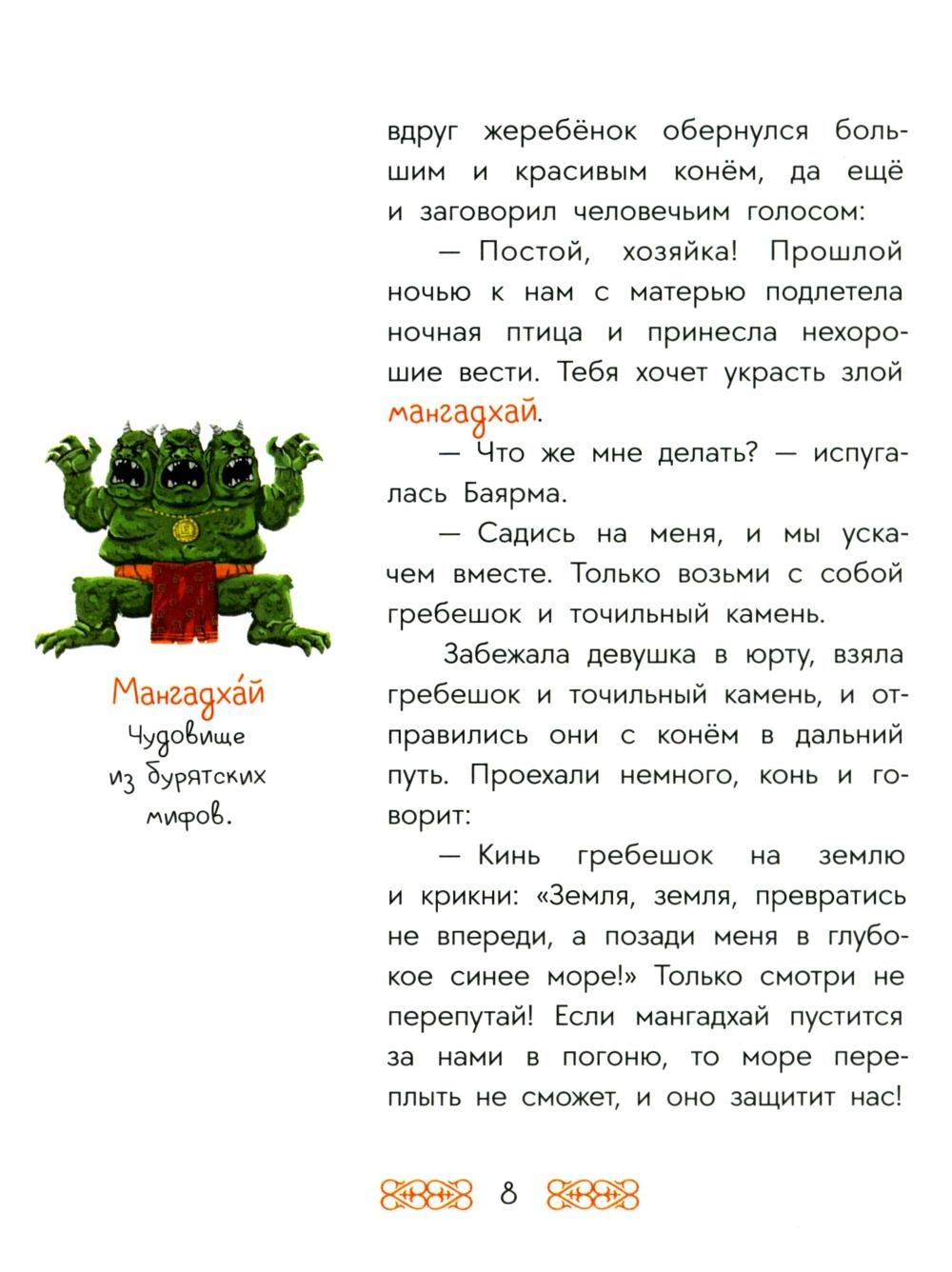 Буряты - древний народ Сибири, поселившийся на берегах Байкала, самого большого пресного озера в мире. Их культура тесно связана с природой. По бурятским поверьям, животные, птицы и деревья неотделимы от человека, а весь мир опутан прочными невидимыми нитями, связывающими воедино всё живое на Земле. Многие столетия буряты пасли скот, ловили рыбу, были искусными кузнецами, общались с духами природы и рассказывали сказки. Их сказки - о находчивых животных, о шаманах и чудовищах, о скромных красавицах и, конечно же, о самых разных чудесах.| Издательство | Детская литература |