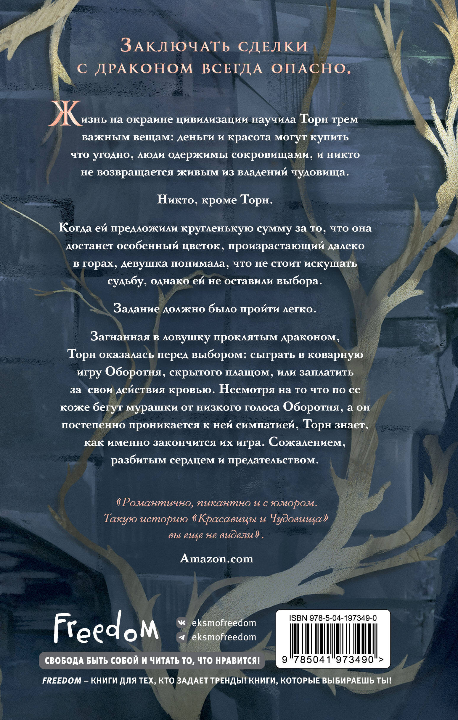 «Чудовище» - законченная одиночная книга в серии «Темные королевства», вдохновленная сказками «Красавица и Чудовище» и «Джек и Бобовый Стебель». Сладко-горькая сказка о надежде для тех, кто уже не ребенок! Роман придется по душе всем, кто любит мрачные ретеллинги, драконов, троп «от ненависти до любви», экшен, драму и приключения! Заключать сделки с драконом всегда опасно. Жизнь на окраине цивилизации научила Торн трем важным вещам: деньги и красота могут купить что угодно, люди одержимы сокровищами, и никто не возвращается живым из владений чудовища. Никто, кроме Торн. Когда ей предложили кругленькую сумму за то, что она достанет особенный цветок, произрастающий далеко в горах, девушка понимала, что не стоит искушать судьбу, однако ей не оставили выбора. Задание должно было пройти легко. Загнанная в ловушку проклятым драконом, Торн оказалась перед выбором. Сыграть в коварную игру Оборотня, скрытого плащом, или заплатить за свои действия кровью. Несмотря на то что по ее коже бегут мурашки от низкого голоса Оборотня, а он постепенно проникается к ней симпатией, Торн знает, как именно закончится их игра. Сожалением, разбитым сердцем и предательством. «Романтично, пикантно и с юмором. Такую историю "Красавицы и Чудовища" вы еще не видели». - Американская писательница Кей Эш| Издательство | ООО "Издательство "Эксмо" |