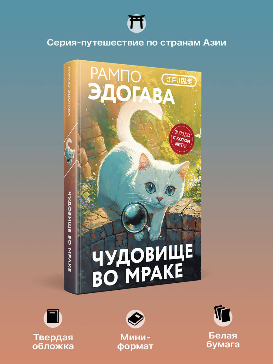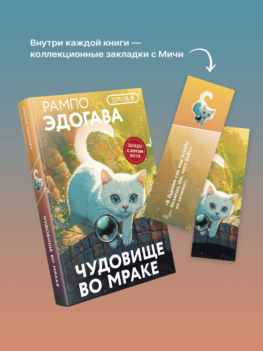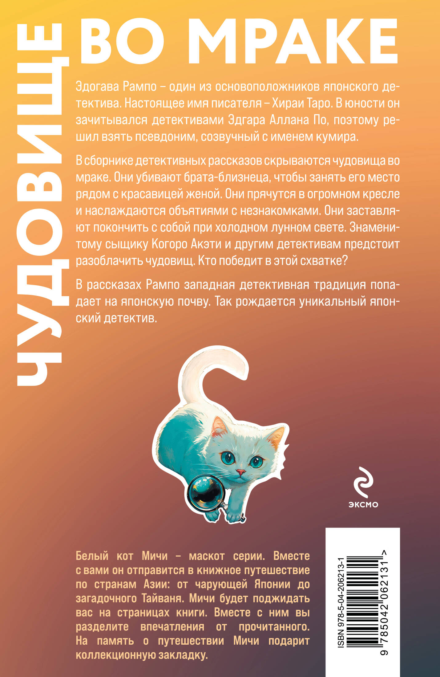 Эдогава Рампо - один из основоположников японского детектива. Можно сказать, что именно он проложил дорогу современному писателю Содзи Симада и его романам «Токийский Зодиак» и «Дом кривых стен». Настоящее имя Рампо - Хираи Таро. В юности он зачитывался детективами Эдгара Аллана По, поэтому решил взять псевдоним, созвучный с именем кумира - Эдогава Рампо. В сборнике рассказов скрываются чудовища во мраке. Они притаились на чердаке и из темноты наблюдают за девушкой. Они убивают брата-близнеца, чтобы занять его место рядом с красавицей женой. Они прячутся в огромном кресле и наслаждаются объятиями с незнакомками. Они заставляют покончить с собой при холодном лунном свете. Знаменитому сыщику Когоро Акэти и другим детективам предстоит разоблачить чудовищ. Кто победит в этой схватке? Белый кот Мичи - маскот серии. Вместе с вами он оправится в книжное путешествие по странам Азии: от чарующей Японии до загадочного Тайваня. Мичи будет поджидать вас на страницах книги. Вместе с ним вы разделите впечатления от прочитанного. На память о путешествии Мичи подарит коллекционную закладку. В рассказах Рампо западная детективная традиция попадает на японскую почву. Так рождается уникальный японский детектив. «Маскот. Путешествие в Азию с белым котом» - серия книг в твердой обложке в формате покетбука. Текст напечатан на белой бумаге. Внутри каждой книги читатель найдет разные коллекционные закладки с белым котом Мичи. «В дурном сне ты всегда делаешь то, чего вовсе не хочешь».