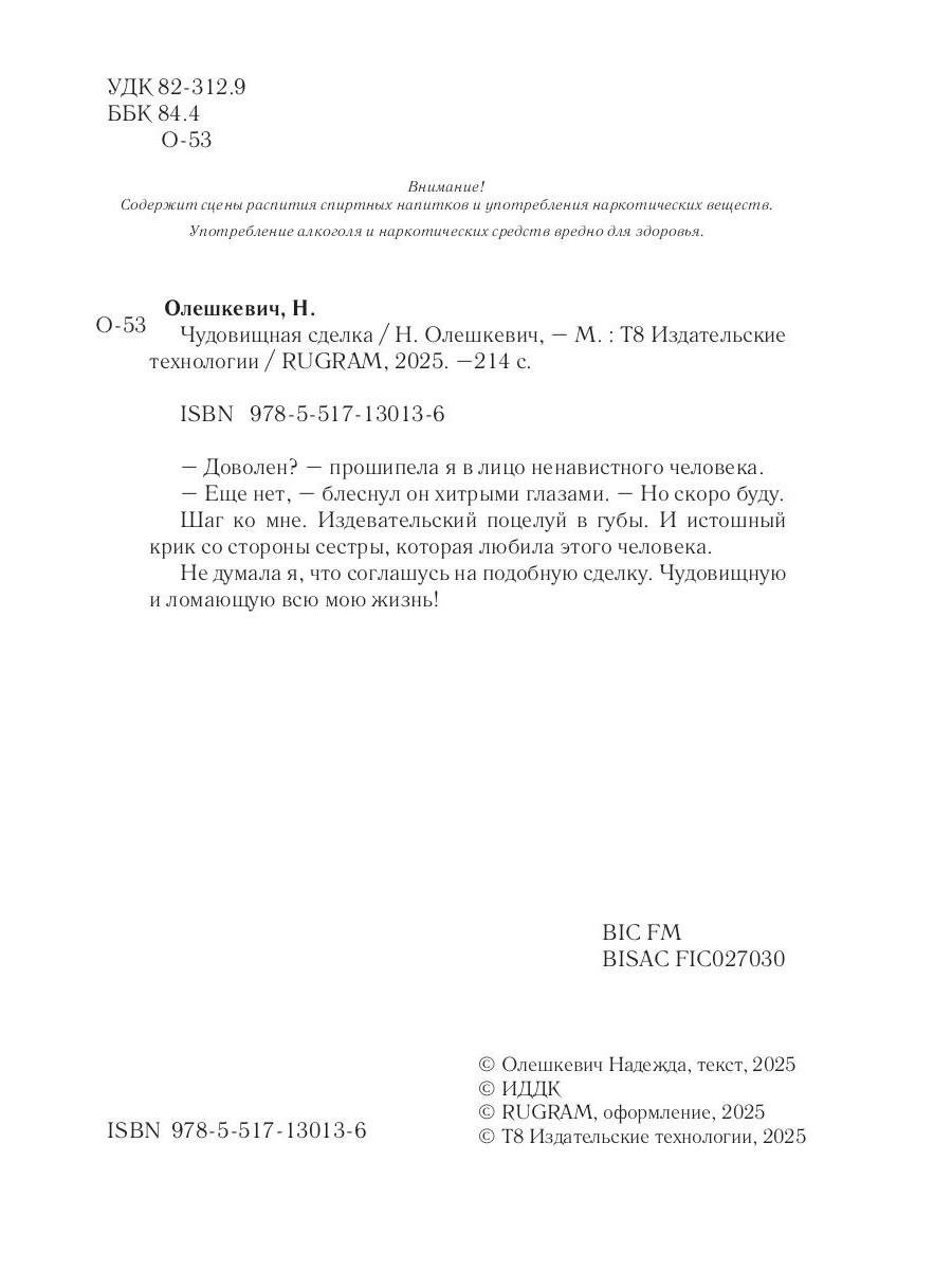 - Доволен? - прошипела я в лицо ненавистного человека. - Еще нет, - блеснул он хитрыми глазами. - Но скоро буду. Шаг ко мне. Издевательский поцелуй в губы. И истошный крик со стороны сестры, которая любила этого человека. Не думала я, что соглашусь на подобную сделку. Чудовищную и ломающую всю мою жизнь!| Издательство | Т8 RUGRAM |