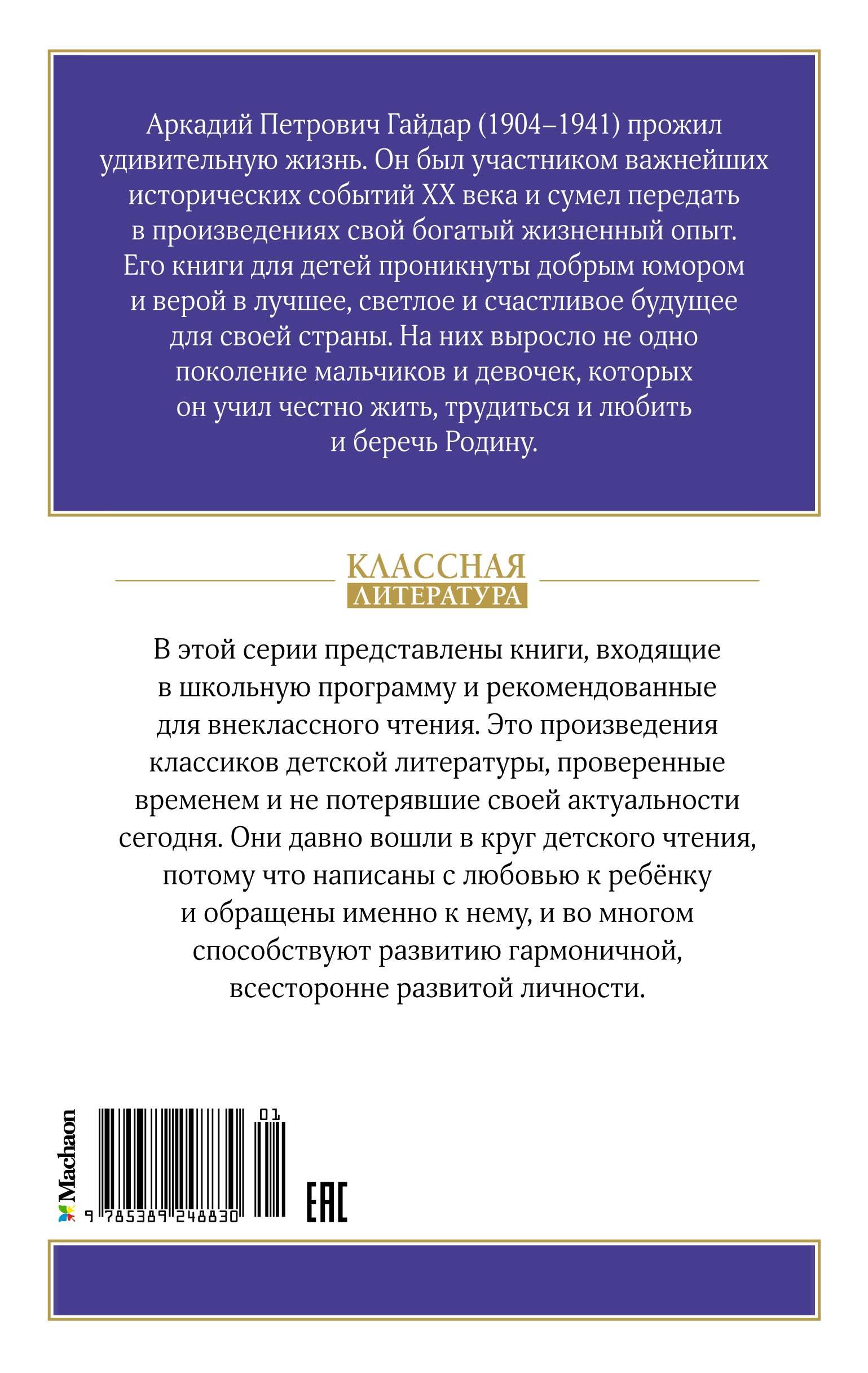 Аркадий Петрович Гайдар (1904-1941) прожил удивительную жизнь. Он был участником важнейших исторических событий 20 века и сумел передать в произведениях свой богатый жизненный опыт. Его книги для детей проникнуты добрым юмором и верой в лучшее, светлое и счастливое будущее для своей страны. На них выросло не одно поколение мальчиков и девочек, которых он учил честно жить, трудиться и любить и беречь Родину.| Издательство | Азбука-Аттикус Издат.группа ООО |