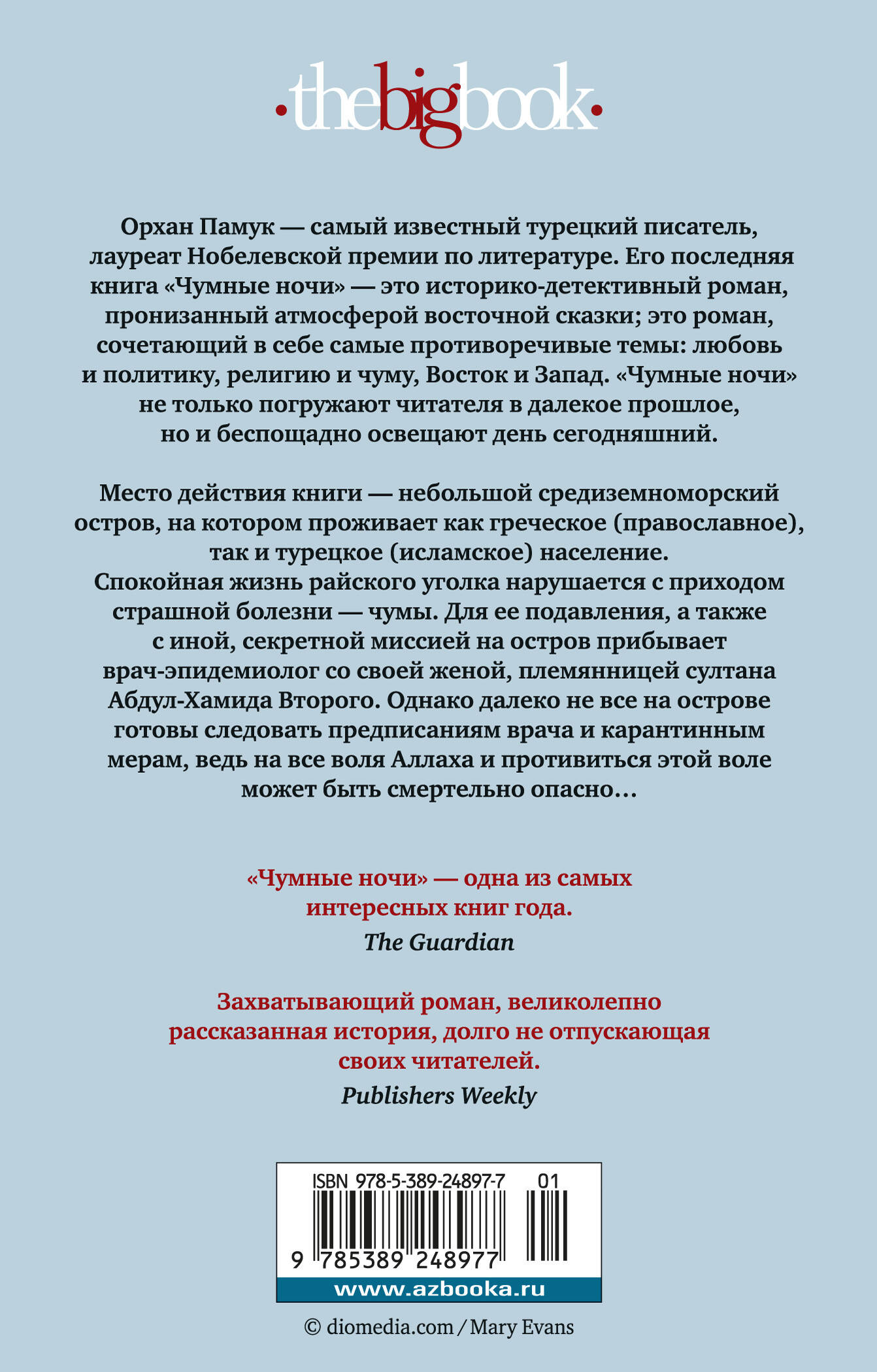 Орхан Памук - самый известный турецкий писатель, лауреат Нобелевской премии по литературе. Его последняя книга "Чумные ночи" - это историко-детективный роман, пронизанный атмосферой восточной сказки; это роман, сочетающий в себе самые противоречивые темы: любовь и политику, религию и чуму, Восток и Запад. "Чумные ночи" не только погружают читателя в далекое прошлое, но и беспощадно освещают день сегодняшний. Место действия книги - небольшой средиземноморский остров, на котором проживает как греческое (православное), так и турецкое (исламское) население. Спокойная жизнь райского уголка нарушается с приходом страшной болезни - чумы. Для ее подавления, а также с иной, секретной миссией на остров прибывает врач-эпидемиолог со своей женой, племянницей султана Абдул-Хамида Второго. Однако далеко не все на острове готовы следовать предписаниям врача и карантинным мерам, ведь на все воля Аллаха и противиться этой воле может быть смертельно опасно…| Издательство | Азбука-Аттикус Издат.группа ООО |