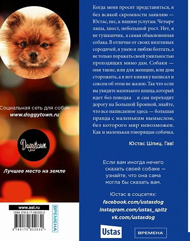 Когда меня просят представиться, я без всякой скромности заявляю - Юстас, пес, к вашим услугам. Четыре лапы, хвост, небольшой рост. Смотрю на мир с высоты 20 сантиметров и поверьте, снизу многое виднее. Очень милый, обладаю обаянием разрушительной силы, и даже если ваша подружка терпеть не может умильных пёсиков - она все равно не устоит. На луну вою только когда выпью. А так - здоровый образ жизни ведет меня на поводке, потому что маленькой собачке много не надо. В книге истории о дружбе и любви, о домашних и бездомных, почти всегда о людях, и иногда редко - о собаках, которые тоже по счастливой случайности научились разговаривать и не знают, куда приткнуть свои таланты. А еще про те капельки абсурда необходимые в этом до предела серьезном мире.