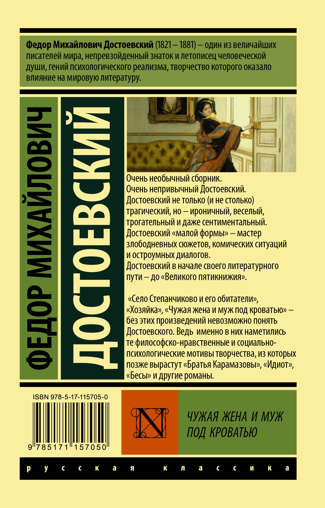 Очень необычный сборник. Очень непривычный Достоевский. Достоевский не только (и не столько) трагический, но - ироничный, веселый, трогательный и даже сентиментальный. Достоевский "малой формы" - мастер злободневных сюжетов, комических ситуаций и остроумных диалогов. Достоевский в начале своего литературного пути - до "Великого пятикнижия". "Село Степанчиково и его обитатели", "Хозяйка", "Чужая жена и муж под кроватью" - без этих произведений невозможно понять Достоевского. Ведь именно в них наметились те философско-нравственные и социально-психологические мотивы творчества, из которых позже вырастут "Братья Карамазовы", "Идиот", "Бесы" и другие романы.