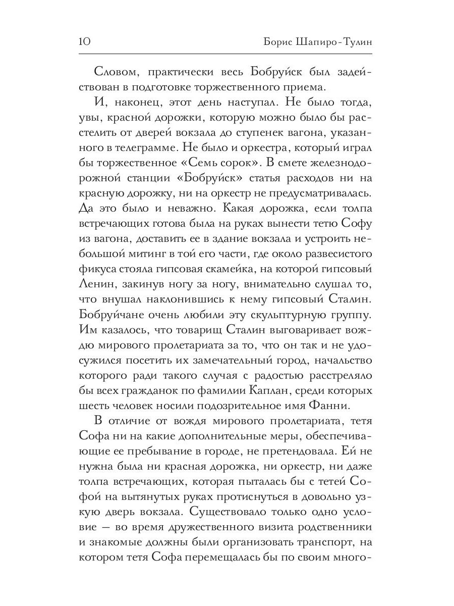 По дыму выварки, подымавшемуся над крышами сараев, жители Бобруйска узнавали о том, что, заботливый муж Фаины Лазаревны приступил к выполнению своих супружеских обязанностей. А то, что эти обязанности заключались исключительно в стирке постельного белья, в этом местные остряки были уверены на все сто. О, у бобруйчан было много знаков, раскрывающих секреты жизненного уклада соседей! Как Витебск для Шагала с его летящими по небу влюбленными, так Бобруйск для Бориса Шапиро-Тулина стал городом-метафорой, в котором чувства тамошних обитателей оголены до предела, а смешное и ужасное существуют не просто рядом, но легко и незаметно переходят друг в друга.| Издательство | Т8 RUGRAM |