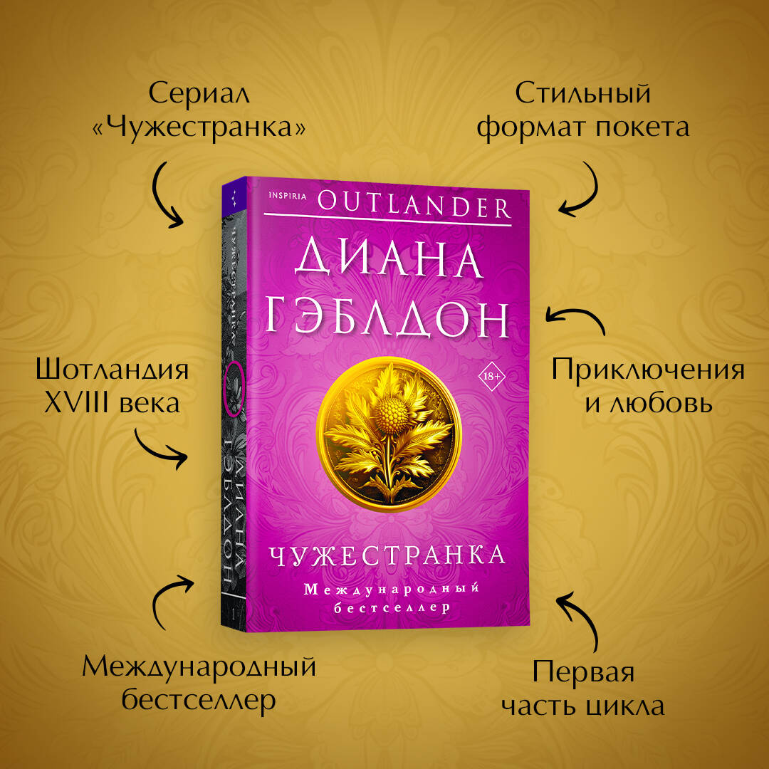 Легендарный цикл Дианы Гэблдон в новом, стильном оформлении! История великой любви Клэр Рэндолл и Джейми Фрэзера завоевала сердца миллионов читателей во всем мире и стала культовым сериалом XXI века. 1945 год. Юная медсестра Клэр Рэндолл возвращается к мирной жизни после четырех лет службы на фронте. Вместе с мужем Фрэнком они уезжают в Шотландию, где планируют провести второй медовый месяц. Влюбленные хотят узнать больше о семье Фрэнка, но одно прикосновение к камню из древнего святилища навсегда изменит их судьбы. Клэр необъяснимым образом переносится в 1743 год, где царят варварство и жестокость. Чтобы выжить в Шотландии XVIII века, Клэр будет вынуждена выйти замуж за Джейми Фрэзера, не обделенного искрометным чувством юмора воина. Только так она сможет спастись и вернуться в будущее. Но настоящие испытания еще впереди. «Невероятная история, которая исследует сердце, взвешивает душу и измеряет человеческий дух на протяжении столетий». - CNN| Издательство | ООО "Издательство "Эксмо" |