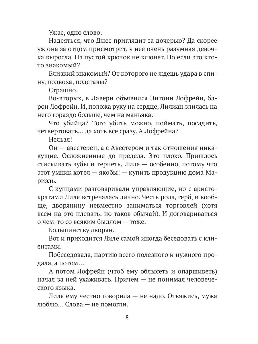 Похитить графиню - полбеды, а вот довезти до места назначения? Да еще уцелеть при этом? Спокойной жизни похитителям никто не обещал. Лилиан умудряется сбежать от своих врагов, и теперь ей необходимо добраться домой. А что для этого нужно сделать? Пройти через лес, чтобы добраться до людей? Устроиться на работу в таверну? Договориться с представителями преступного мира Авестера? Если на другой чаше весов лежит ее возвращение домой, к родным и близким - ее сиятельство пойдет на все. Но удастся ли ей вернуться домой вовремя? Или хотя бы до родов?| Издательство | Т8 RUGRAM |