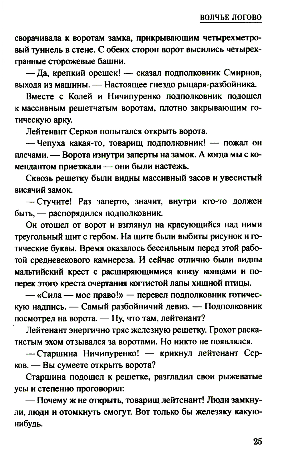 В книгу известного советского писателя Василия Алексеевича Попова (1910-1992) вошли две его повести «Волчье логово» (1946,1974) и «Чужой след» (1956). В первой из них рассказывается о схватке советских контрразведчиков с нацистскими диверсантами из организации «Вервольф» в весенние месяцы победного 1945 года. Под сводами старинного тевтонского замка, хранящего секреты прошлого и настоящего, команда подполковника Смирнова ведет охоту на нацистских оборотней и таинственного Железного Рыцаря. Советским разведчикам помогают их друзья - Коля и Наташа - русские дети, освобожденные из фашистской неволи. Вторая - о борьбе с вражеской агентурой в первые послевоенные годы. Действие развивается на юге нашей страны. Диверсанты пытаются захватить прибор инженера Ушакова, в районе испытаний которого разворачивается многоходовая операция. Читателя ждут погони по горным дорогам, ночные засады, перестрелки, неожиданные разоблачения. Книги возвращаются к читателю после многих лет забвения.| Издательство | Вече |