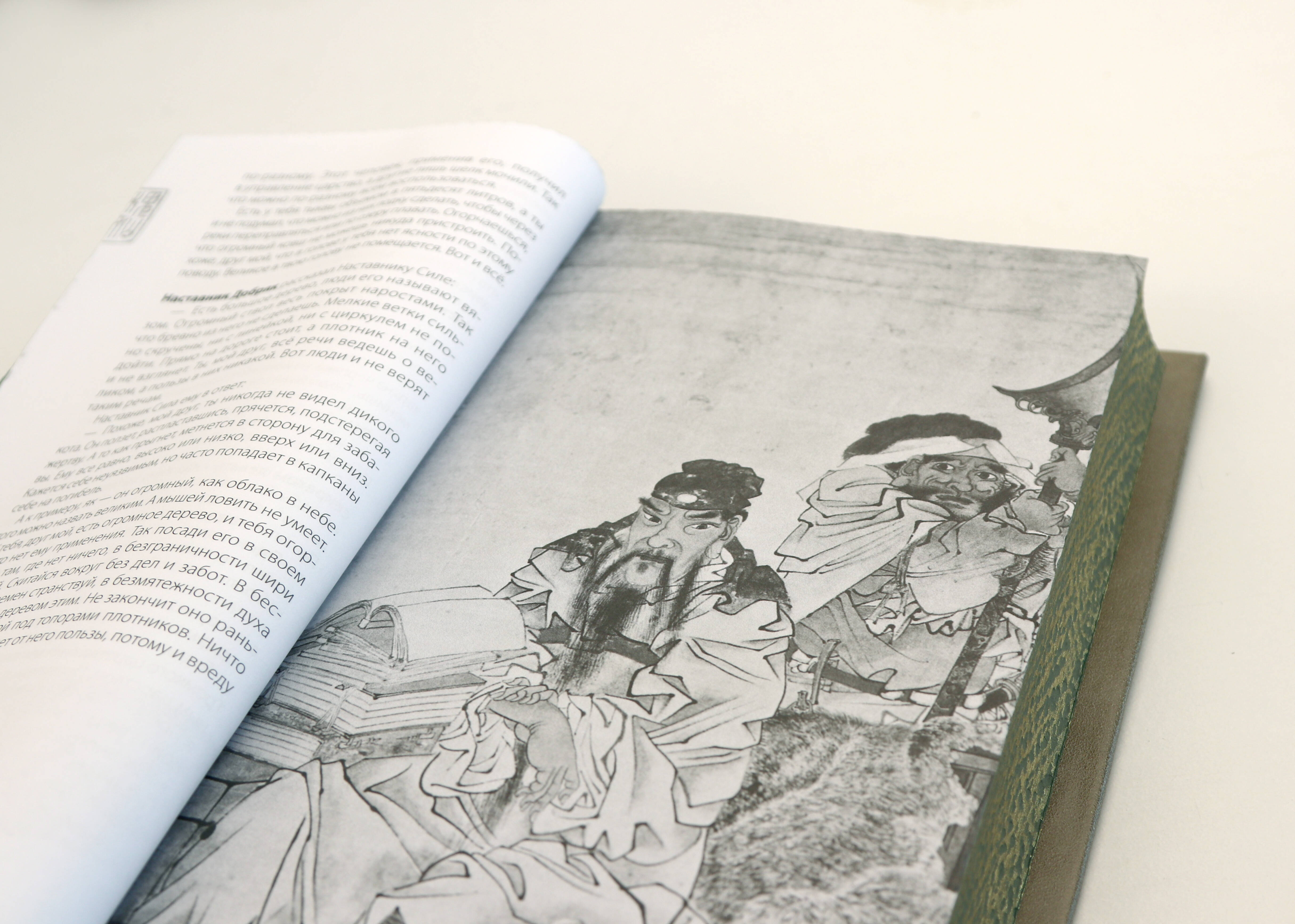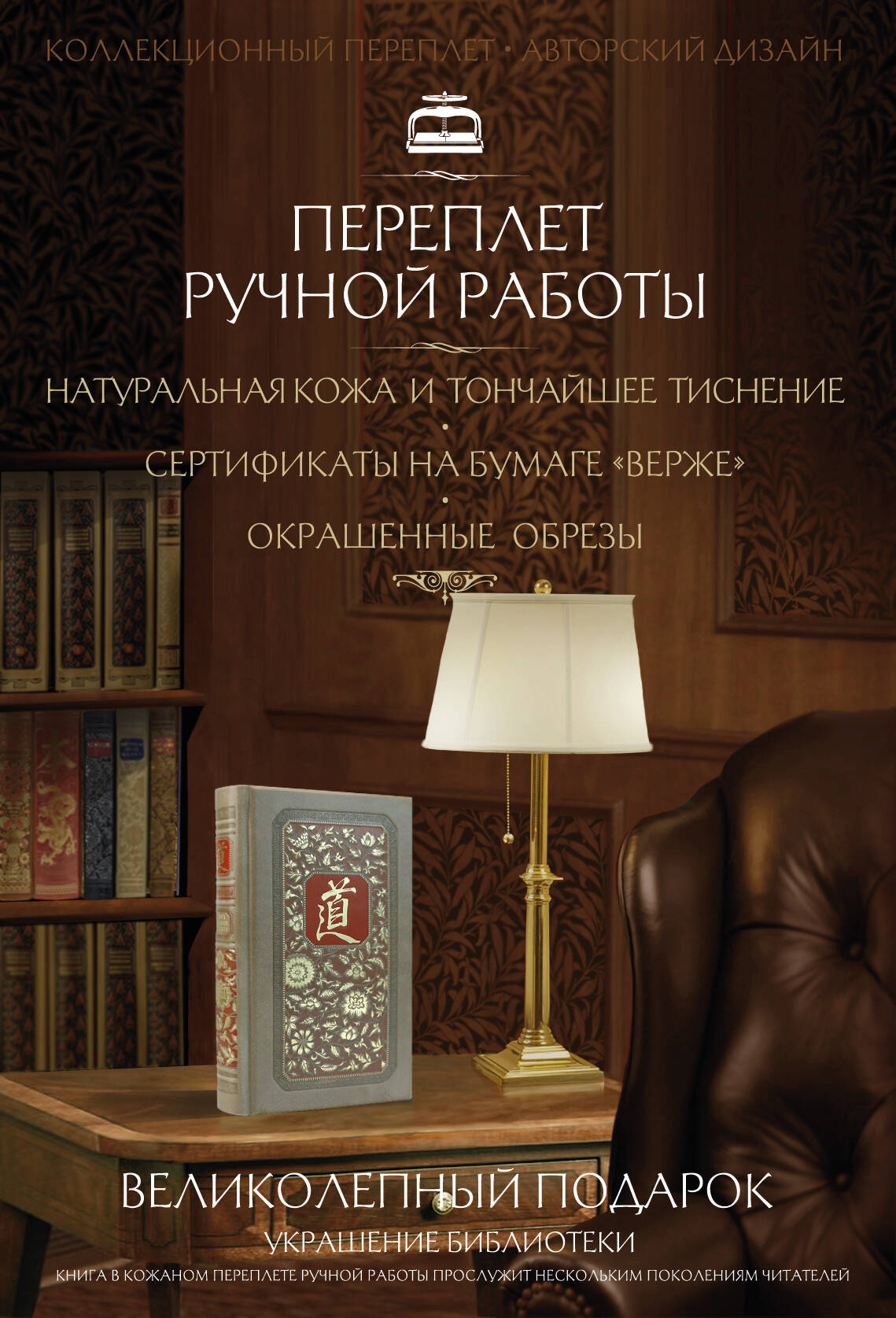 Подарочное издание в изящном коллекционном переплете ручной работы. Книга отпечатана на плотной бумаге. Переплет создан по технологии XIX века в лучших традициях книжного искусства. Кожа на переплете цвета светлого нефрита. Тиснение рельефное, золотое и натуральным пигментом. Корешок кругленый. Обрез торшонирован, окрашен и вызолочен вручную. На передней сторонке помещено изображение иероглифа с именем Чжуан-Цзы. Переплет оформлен по авторским рисункам, выполненным специально для данного издания, в оформлении использованы изобразительные мотивы, традиционные для культуры Средневекового Китая. Форзацы из фактурной бумаги, каптал из шелка и ляссе двух цветов. К книге прилагается сертификат, подтверждающий лимитированный тираж переплета ручной работы. Книга в кожаном переплете ручной работы послужит нескольким поколениям читателей.| Издательство | ООО "Издательство "Эксмо" |