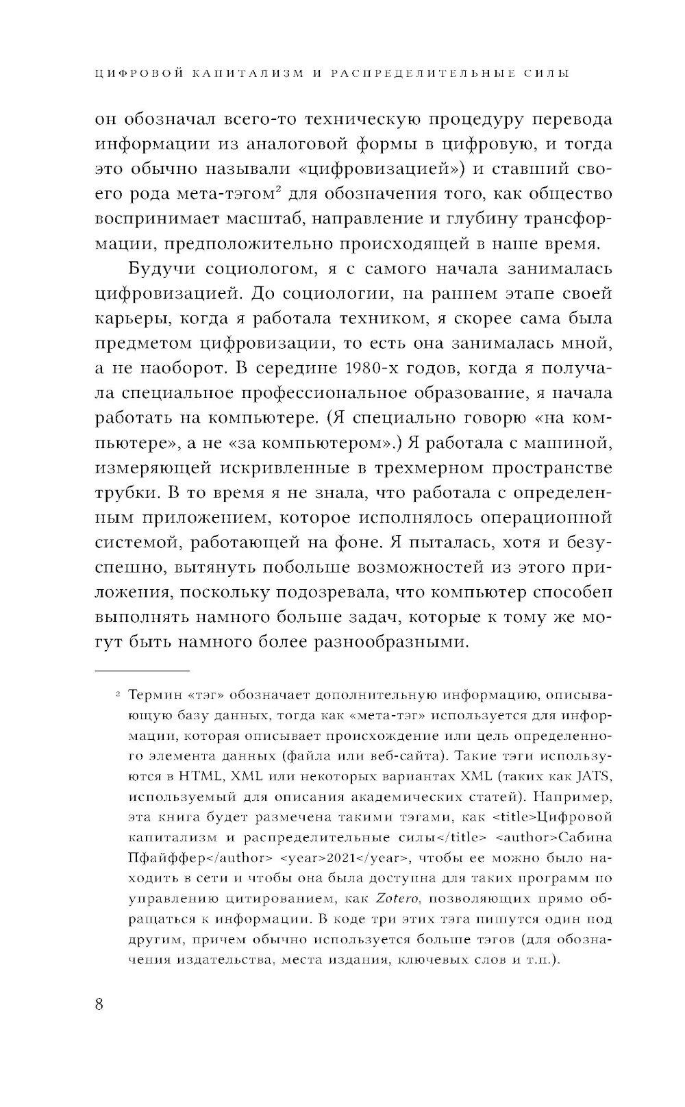 Забирают ли роботы наши рабочие места? Те, кто задаются этим вопросом, неверно поняли цифровизацию. Цифровизация - это не промышленная революция на новый лад. Сабина Пфайффер смотрит в суть проблемы цифрового капитализма. В своем анализе она противопоставляет марксистскую концепцию производительных сил идее распределительных сил. На примерах от платформенной экономики до искусственного интеллекта Пфайффер показывает, что цифровой капитализм связан не столько с эффективным созданием стоимости, сколько с ее быстрой, безрисковой и постоянно гарантированной реализацией на рынках. Исследование этой динамики и ее последствий поднимает вопрос о том, насколько разрушительными могут быть распределительные силы цифрового капитализма. Книга адресована экономистам, социологам, социальным философам и всем тем, кто интересуется процессами, связанными с цифровизацией и цифровым капитализмом.| Издательство | ИД Высшей школы экономики |