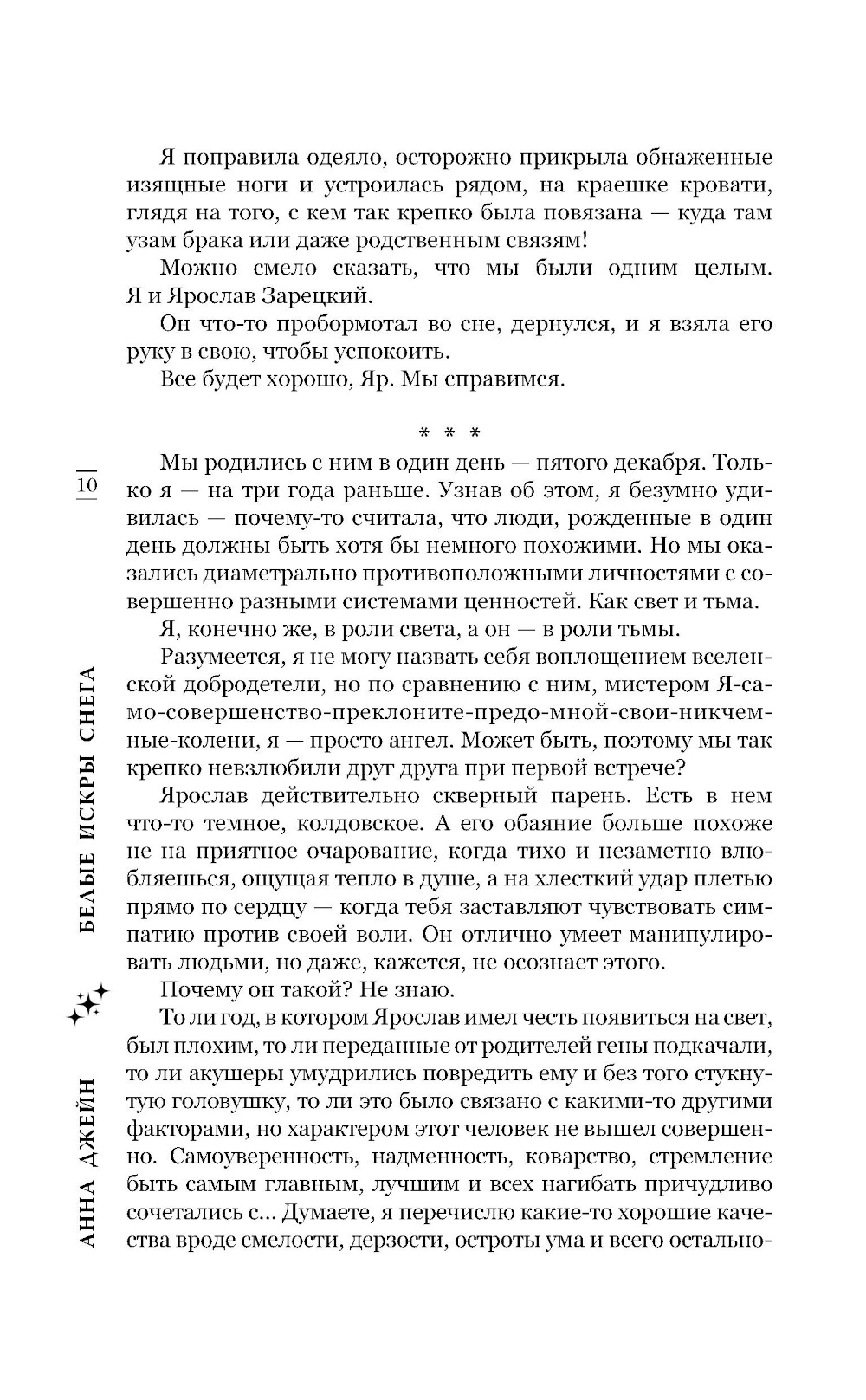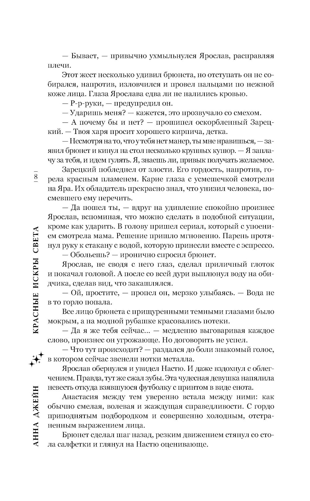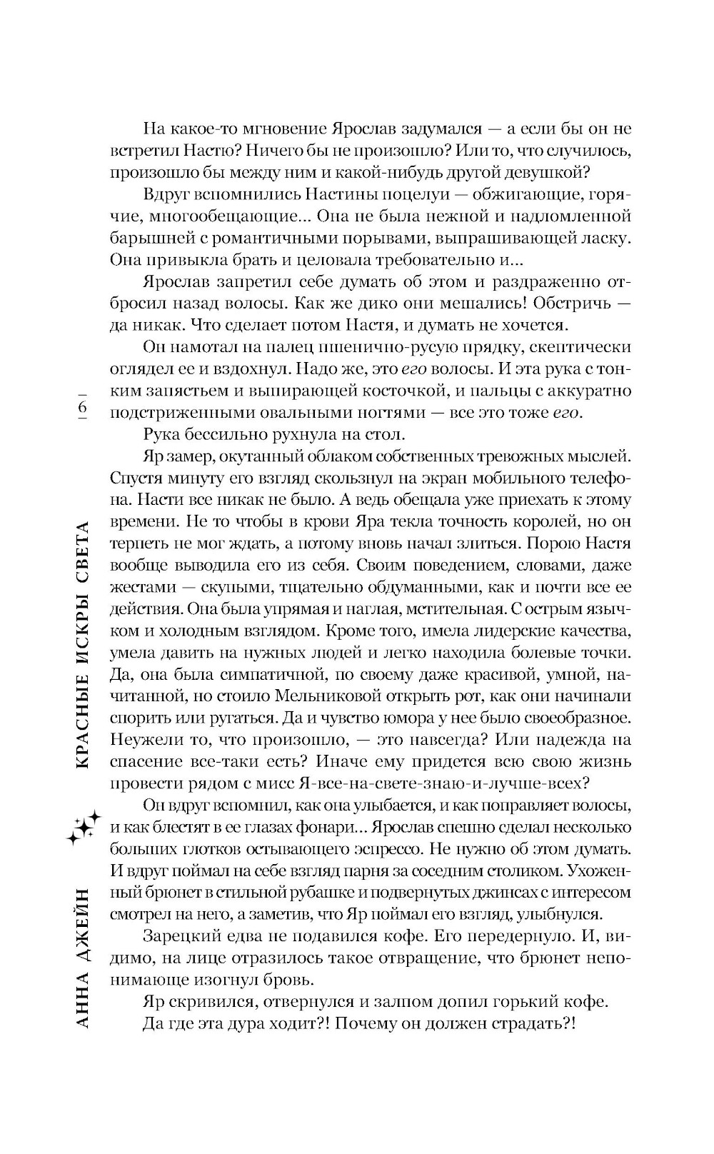 Комплект из 3 книг: Красные искры света «Красные искры света» - захватывающий роман от Анны Джейн, на страницах которого переплетаются магия, любовь, ненависть и судьбоносные встречи. Книга погрузит вас в невероятный водоворот событий, от которого не захочется пробуждаться. Волшебные искры солнца Обновленное издание третьей части романтического цикла Анны Джейн «Мы - искры»! Книга «Волшебные искры солнца» рассказывает историю двух подростков - Насти и Ярослава. Она - дерзкая и смелая бунтарка. Он - избалованный красавчик, который ни в чем не привык себе отказывать. Им не дано быть вместе, но судьба сталкивает их снова и снова. Что это, случайность или знак свыше? Ответ спрятан в сердцах героев и в той неведомой силе, которая управляет ими, словно кукловод. Без магии тут не обошлось... Роман в жанре городского фэнтези закружит вас в вихре магии, чудес и коварных интриг, преодолеть которые способна только настоящая любовь! Белые искры снега Быть может, они были предназначены друг другу... И даже встречались в прошлой жизни. Но в этой они - полные противоположности и терпеть один другого не могут! Настя - самостоятельная, гордая и яркая девушка, привыкшая не опускать руки перед трудностями. Ярослав - утонченный эгоист, мальчик с комплексом принца, живущий комфортной жизнью. И между ними целая пропасть взаимной неприязни. Отчего они так часто встречаются? Сможет ли призрак загадочной девушки связать их судьбы? И что за таинственный Орден магов-адрианитов незримо играет с их жизнями? Магия ближе, чем думали эти двое. И искрится, как снег под светом фонаря морозной ночью...| Издательство | АСТ |