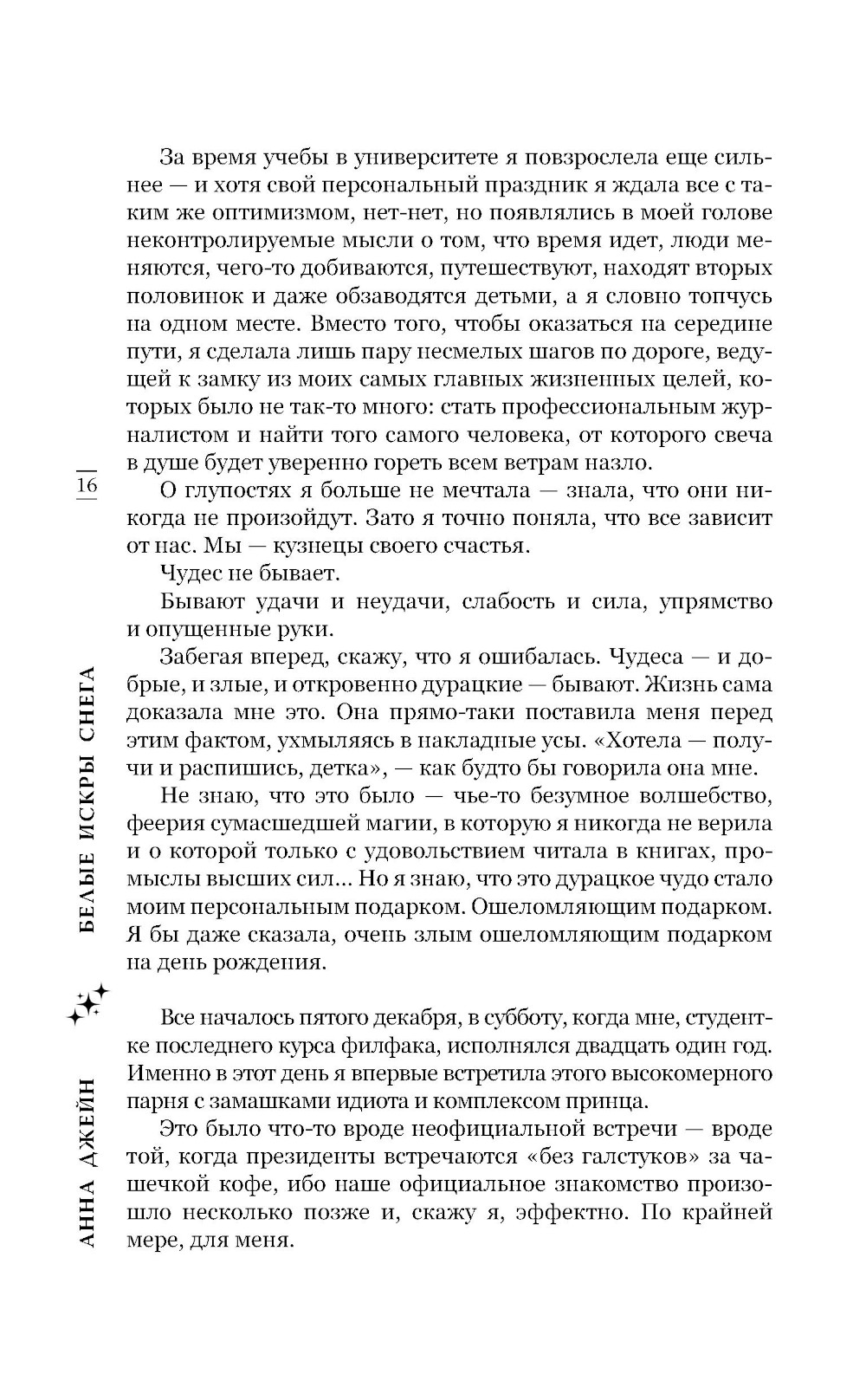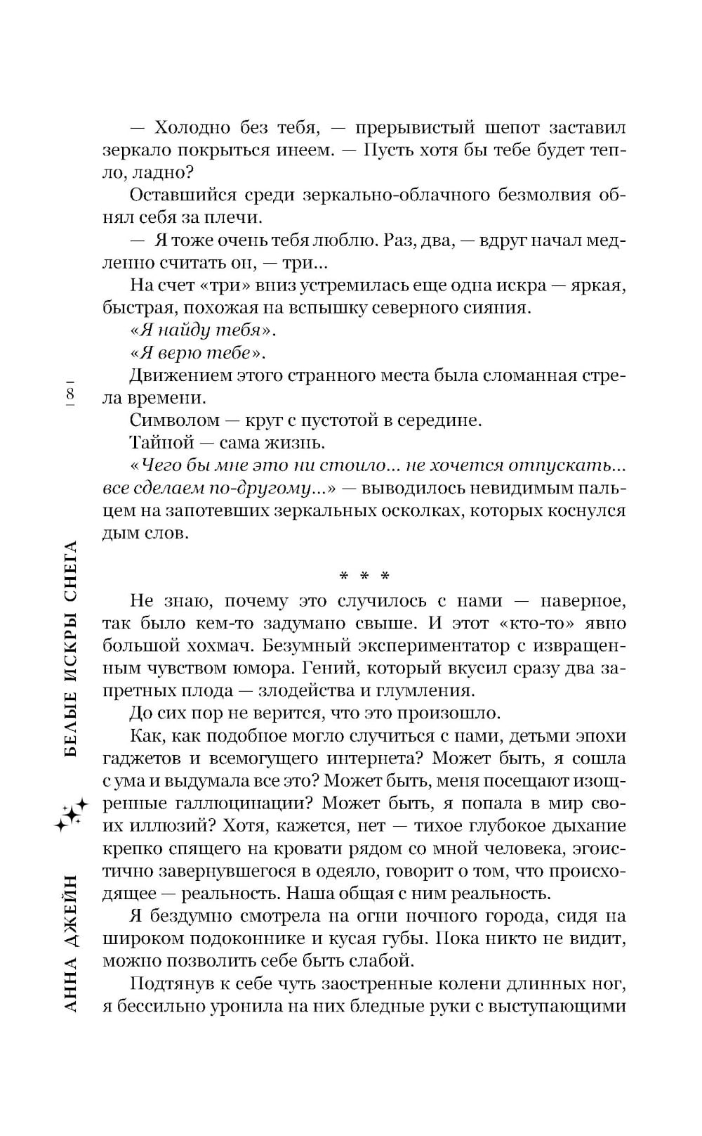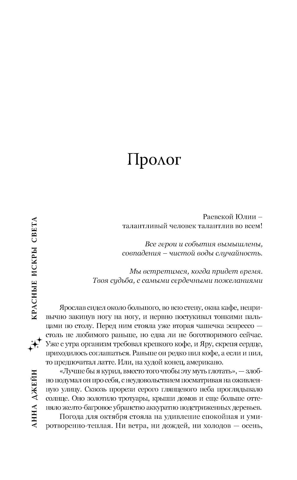 Комплект из 3 книг: Красные искры света «Красные искры света» - захватывающий роман от Анны Джейн, на страницах которого переплетаются магия, любовь, ненависть и судьбоносные встречи. Книга погрузит вас в невероятный водоворот событий, от которого не захочется пробуждаться. Волшебные искры солнца Обновленное издание третьей части романтического цикла Анны Джейн «Мы - искры»! Книга «Волшебные искры солнца» рассказывает историю двух подростков - Насти и Ярослава. Она - дерзкая и смелая бунтарка. Он - избалованный красавчик, который ни в чем не привык себе отказывать. Им не дано быть вместе, но судьба сталкивает их снова и снова. Что это, случайность или знак свыше? Ответ спрятан в сердцах героев и в той неведомой силе, которая управляет ими, словно кукловод. Без магии тут не обошлось... Роман в жанре городского фэнтези закружит вас в вихре магии, чудес и коварных интриг, преодолеть которые способна только настоящая любовь! Белые искры снега Быть может, они были предназначены друг другу... И даже встречались в прошлой жизни. Но в этой они - полные противоположности и терпеть один другого не могут! Настя - самостоятельная, гордая и яркая девушка, привыкшая не опускать руки перед трудностями. Ярослав - утонченный эгоист, мальчик с комплексом принца, живущий комфортной жизнью. И между ними целая пропасть взаимной неприязни. Отчего они так часто встречаются? Сможет ли призрак загадочной девушки связать их судьбы? И что за таинственный Орден магов-адрианитов незримо играет с их жизнями? Магия ближе, чем думали эти двое. И искрится, как снег под светом фонаря морозной ночью...| Издательство | АСТ |