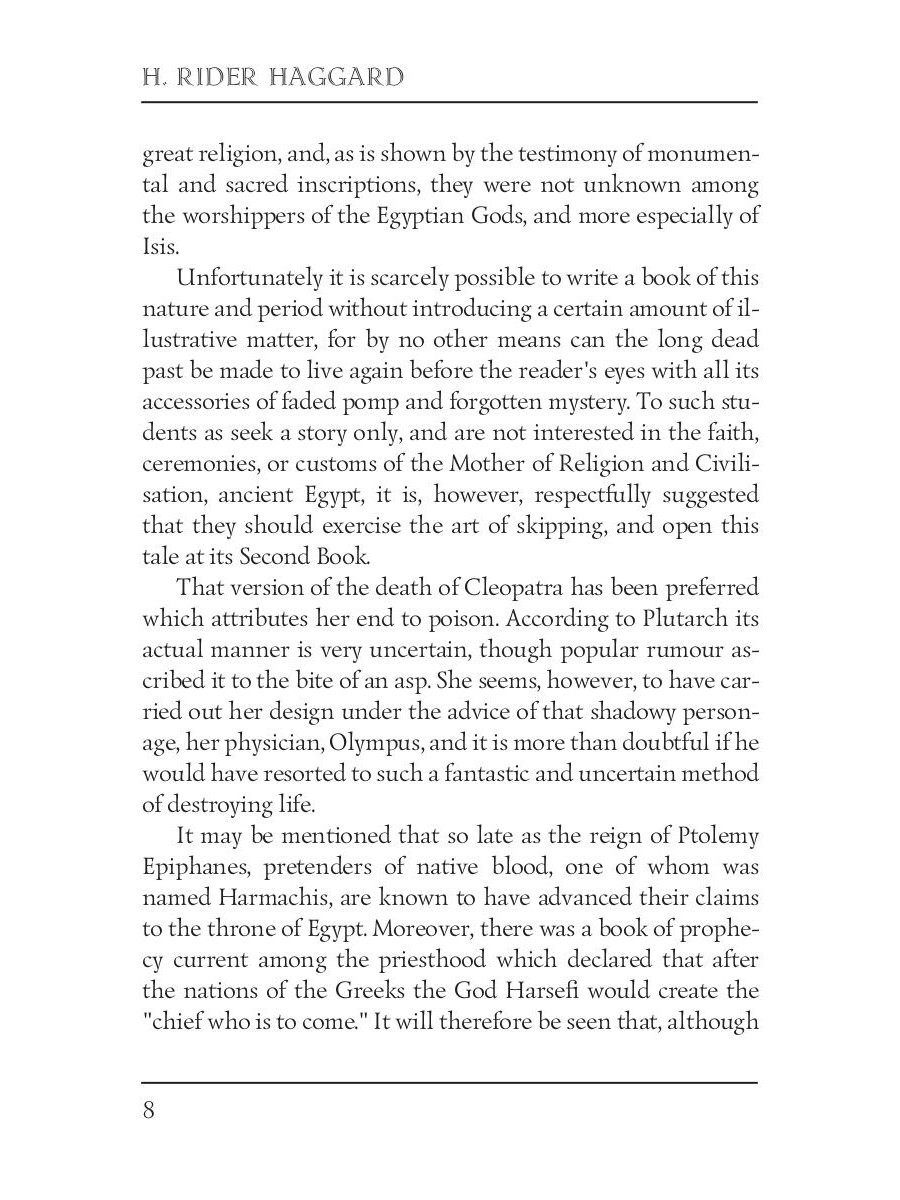 As is the case with the majority of Haggard's works, the story draws heavily upon adventure and exotic concepts.