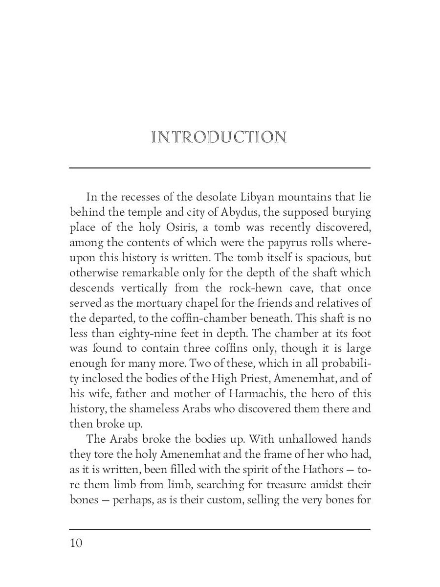 The story, told from the point of view of the Egyptian priest Harmachis, is recounted in biblical language, being in the form of papyrus scrolls found in a tomb.