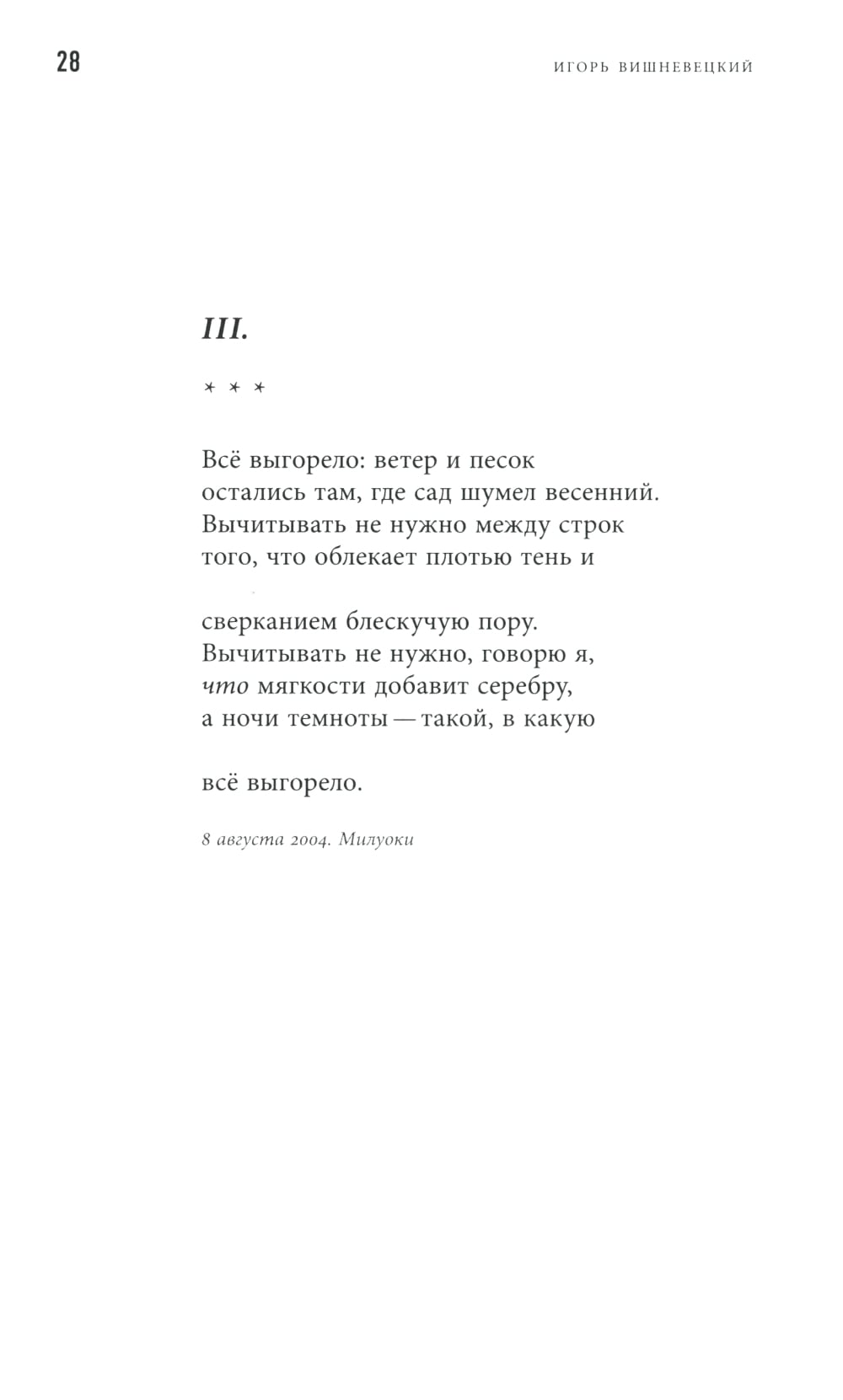Лирик и эпик одновременно, Игорь Вишневецкий стремится к максимальному расширению возможностей русской просодии; границы не только между типами стиха, но и между искусствами для него являются как бы несуществующими. Конечная цель его - утверждение оснований для поэзии, обращенной в будущее и сохраняющей связь с тем, что сделано прежде, причем не только в одной русской традиции. Игорь Вишневецкий родился в 1964 г. в Ростове-на-Дону. С 1981 г. учился, жил и работал в Москве, с 1992 г. - в основном в США. Первая печатная публикация стихов в «Русской мысли» (Париж, 1990). Сборники стихов: «Стихотворения» (1992), «Тройное зрение» (1997), «Воздушная почта» (2001), «На запад солнца» (2006), «Первоснежье» (2008), «Стихослов» (2008). Книги прозы: «Ленинград» (2012), сборник «Неизбирательное сродство» (2018). Лауреат премий «НОС» (2011) и журнала «Новый мир» (2010, дважды в 2017, 2020). Автор трех монографических исследований: об Андрее Белом, композиторах 1920-1930-х годов, Сергее Прокофьеве. Режиссер экспериментального фильма «Ленинград» (2014). Живет в Питтсбурге.| Издательство | Новое литературное обозрение |