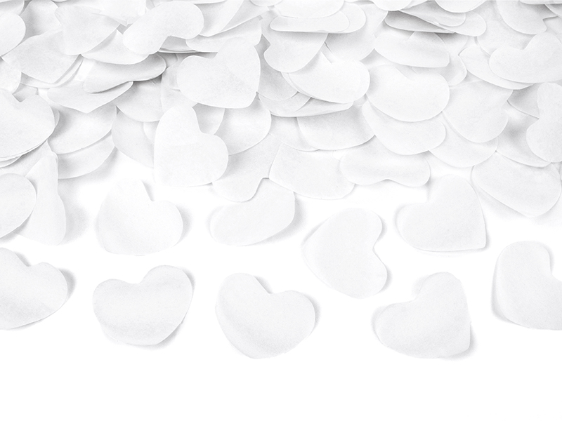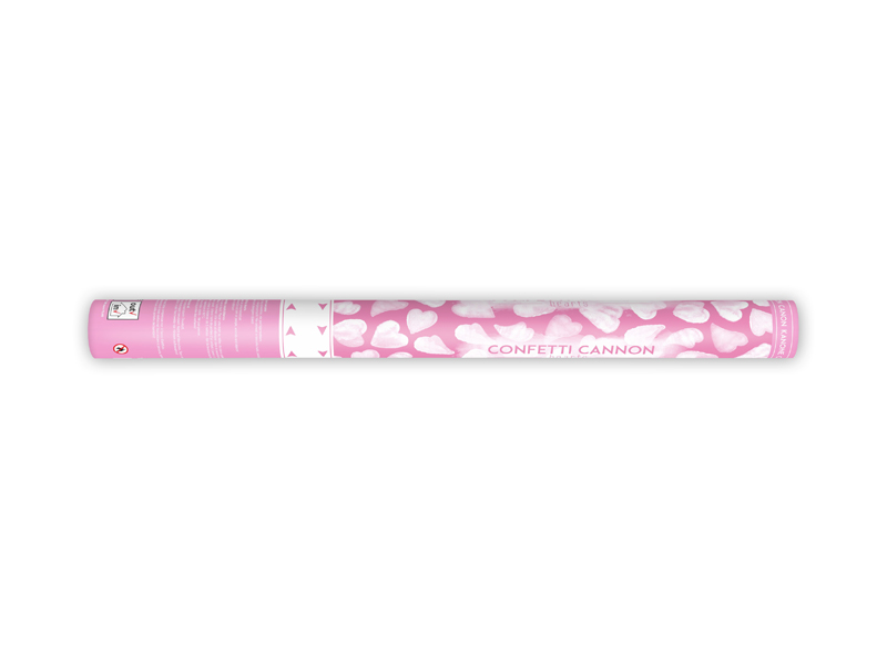 Confetti cannon with hearts, white, 60cm