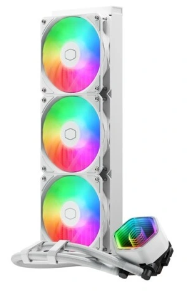 Cooler Master MasterLiquid 360 Core II White - система жидкостного охлаждения формата AIO с радиатором 360 мм и ARGB-подсветкой. Оснащена двухкамерным насосом с эффектом «бесконечное зеркало» и тремя ARGB-вентиляторами MF 120 Lite.