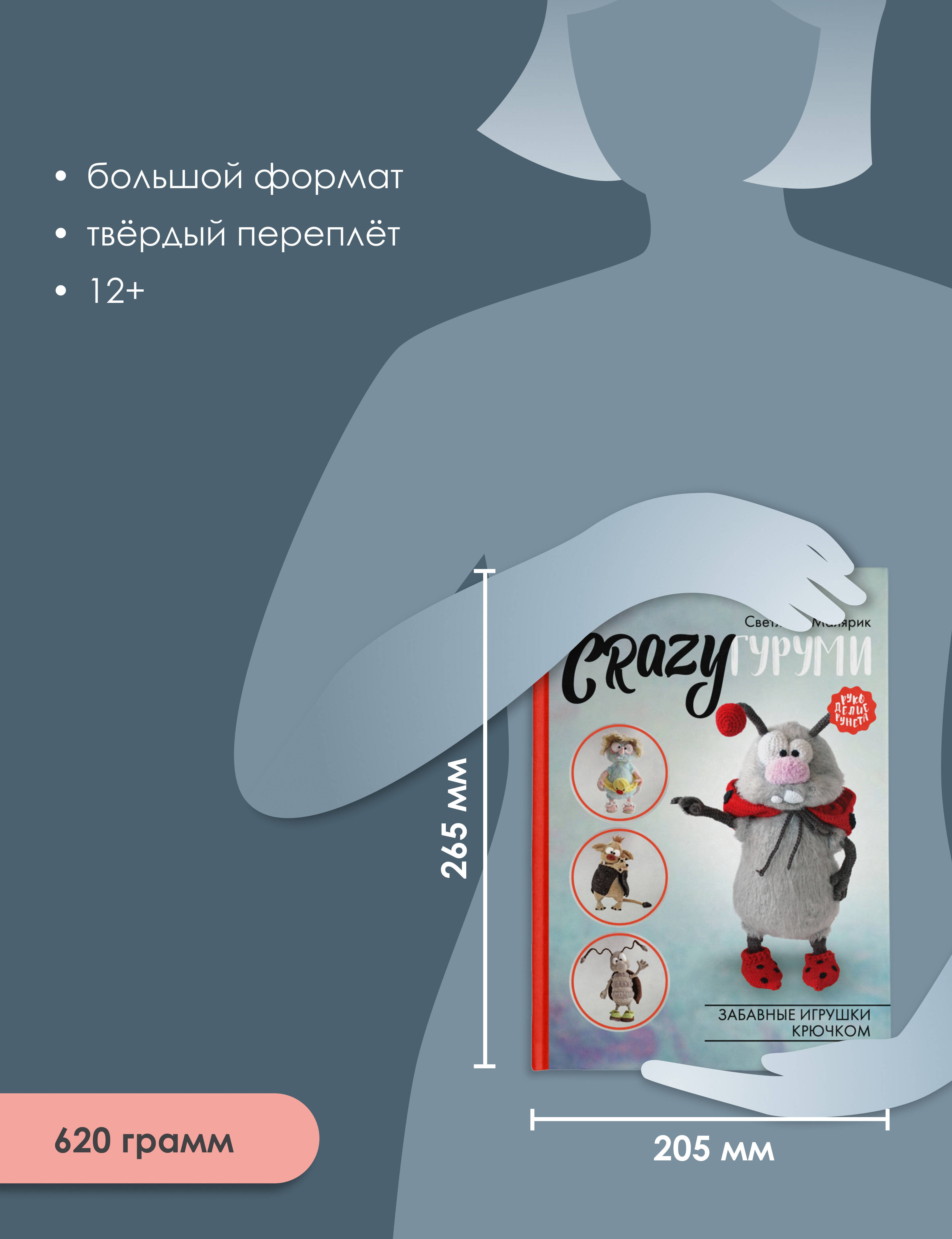 "CRAZYгуруми. Забавные игрушки крючком" - книга, в которой собраны 8 увлекательных и несложных мастер-классов по созданию игрушек в образах причудливых животных и насекомых. Сказочные и по-доброму сумасшедшие персонажи от милого ежика до забавного таракана обязательно пробудят творческий потенциал и воображение как в новичках, так в опытных мастерах вязания крючком. Пользуясь простыми инструкциями, сопровождающимися пошаговыми фотографиями и полезными советами, вы сможете с легкостью связать необычных героев и украсить ими интерьер. Цветная книга большого формата станет отличным пордарком для всех любителей вязания.| Издательство | ИЗДАТЕЛЬСТВО "АСТ" |