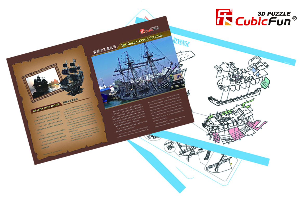 Все любят собирать пазлы - это весело и познавательно. Пазлы идеально подходят для собирания в одиночку или в группе. CubicFun - объемный пазл, конструктор-головоломка, разработан и сделан из бумаги и пены EPS, не требует дополнительных инструментов и клея для сборки. Наши конструкторы представляют определенный интерес не только для детей, но и для их родителей. Собранные объемные конструкторы-головоломки выглядят, совсем как настоящие, и с исторической точностью повторяют каждую деталь внешнего вида сооружения. Мы тщательно отбираем архитектурные шедевры для наших серий, чтобы Ваши дети могли ознакомиться с наиболее важными из них. Как известно дети редко желают усидчиво обучаться и качественно воспринимать и запоминать информацию, а в случае с конструкторами Cubic Fun это происходит само собой в развлекательно-познавательной форме. Эдвард Тич по прозвищу Черная Борода - один из самых отъявленных пиратов в истории мореплавания. В 1715 году он управлял кораблем «Месть Королевы Анны», активно атакуя Британский флот, на что не отваживались другие пираты. Тогда-то Черная Борода и прославился. Все побережье вдоль Атлантического океана находилось в ужасе, понимая, что даже Королевский флот не в силах обеспечить безопасность. Прототипом корабля «Черная Жемчужина» Пиратов Карибского моря стал корабль «Месть Королевы Анны». Уровень сложности - 5. Функции: помогает в развитии логики и творческих способностей ребенка; помогает в формировании мышления, речи, внимания, восприятия и воображения; развивает моторику рук; расширяет кругозор ребенка и стимулирует к познанию новой информации. Практические характеристики: обучающая, яркая и реалистичная модель; идеально и легко собирается без инструментов; увлекательный игровой процесс; тематический ассортимент; новый качественный материал (ламинированный пенокартон). Размер готового пазла-модели: 48 x 15 x 42,5 см.