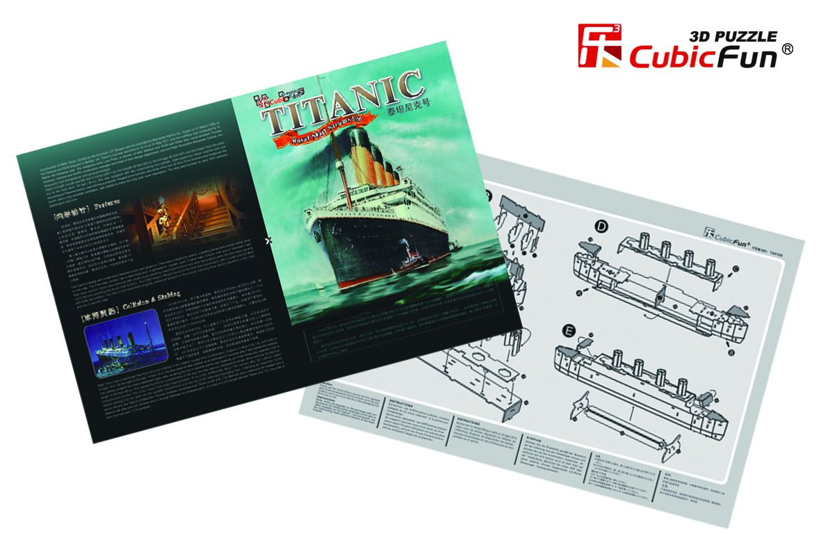 Все любят собирать пазлы - это весело и познавательно. Пазлы идеально подходят для собирания в одиночку или в группе. CubicFun - объемный пазл, конструктор-головоломка, разработан и сделан из бумаги и пены EPS, не требует дополнительных инструментов и клея для сборки. Наши конструкторы представляют определенный интерес не только для детей, но и для их родителей. Собранные объемные конструкторы-головоломки выглядят, совсем как настоящие, и с исторической точностью повторяют каждую деталь внешнего вида сооружения. Мы тщательно отбираем архитектурные шедевры для наших серий, чтобы Ваши дети могли ознакомиться с наиболее важными из них. Как известно дети редко желают усидчиво обучаться и качественно воспринимать и запоминать информацию, а в случае с конструкторами Cubic Fun это происходит само собой в развлекательно-познавательной форме. CUBICFUN 3D пазл "Титаник" (маленький). Размер готового пазла-модели: 45 x 6 x 13 см. RMS Titanic был британским пассажирским лайнером компании White Star Line, который затонул в Северной Атлантике 15 апреля 1912 года после столкновения с айсбергом во время своего первого рейса из Саутгемптона в Нью-Йорк. Из примерно 2224 пассажиров и членов экипажа на борту погибло более 1500, что сделало потопление на тот момент одним из самых смертоносных среди отдельных кораблей и самым смертоносным потоплением суперлайнера или круизного лайнера в мирное время на сегодняшний день. Благодаря большому вниманию общественности, катастрофа с тех пор стала материалом для многих художественных произведений и основополагающим материалом для жанра фильмов-катастроф.