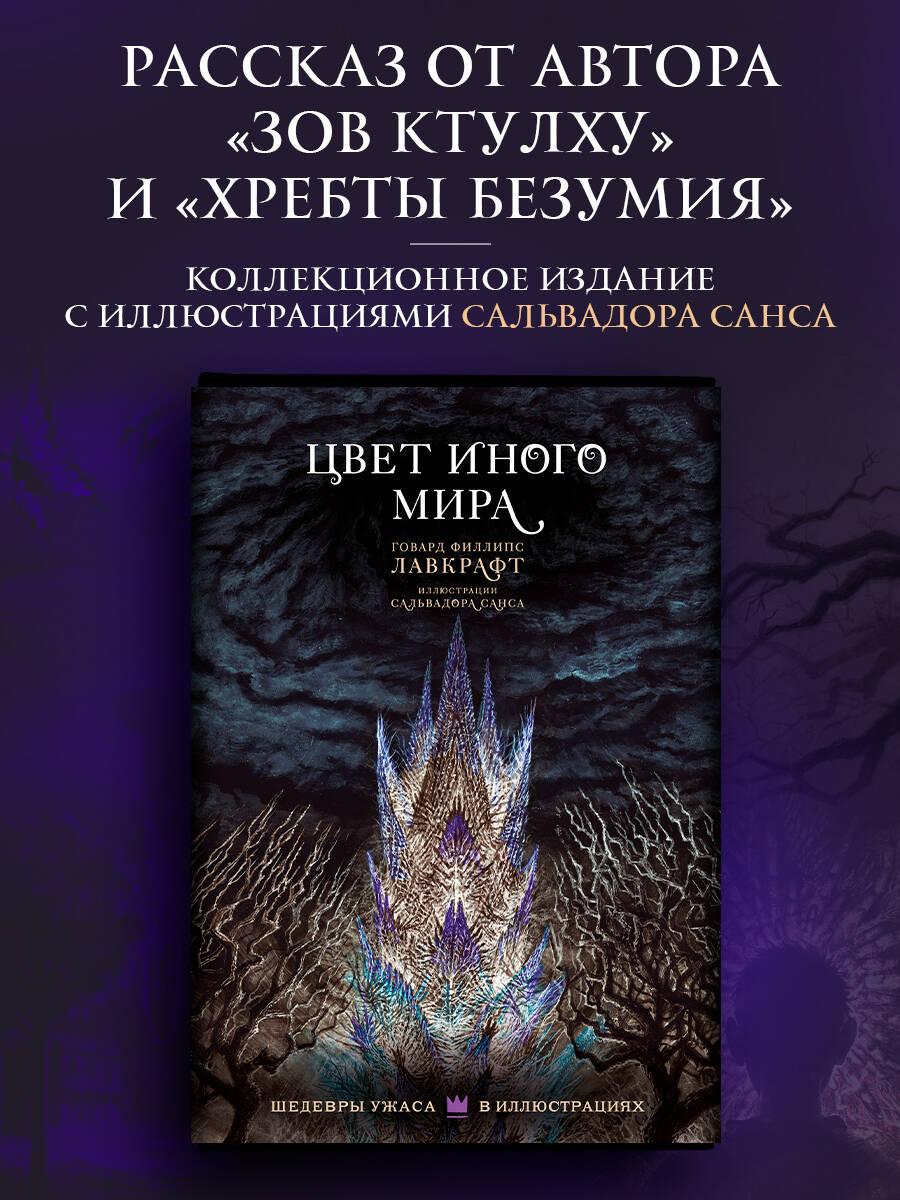 Погрузитесь в мир загадочных тайн и необъяснимых явлений с книгой Говарда Лавкрафта «Цвет иного мира». Этот рассказ, который автор считал своим лучшим произведением, теперь украшен иллюстрациями знаменитого художника и мультипликатора Сальвадора Санса, награжденного на Comic-Con International. Уникальное сочетание готического ужаса и детальной визуализации сделают это чтение незабываемым. Действие «Цвета иного мира» разворачивается на уединенных просторах Новой Англии, где давние секреты и мистические силы окутывают старые фермы и лесные просторы. Здесь чужаки не находят покоя, а старожилы таинственно исчезают, оставляя после себя лишь тревожные воспоминания и страшные предчувствия. Сальвадор Санс, автор комиксов и создатель удостоенного наград мультфильма «Горгоны», дарит новую жизнь этой уникальной истории, оживляя слова Лавкрафта красочными иллюстрациями. Каждая страница этой книги погружает вас все глубже в мир Лавкрафта, превращая чтение в визуальное путешествие через таинственные и зловещие уголки его вселенной. Если вы фанат творчества Говарда Лавкрафта или ценитель изысканного иллюстративного искусства, «Цвет иного мира» станет для вас настоящим сокровищем. Это мастерское сочетание литературы и живописи, которое превращает великую историю в нечто большее - в глубоко переживаемый, уникальный опыт.| Издательство | ИЗДАТЕЛЬСТВО "АСТ" |