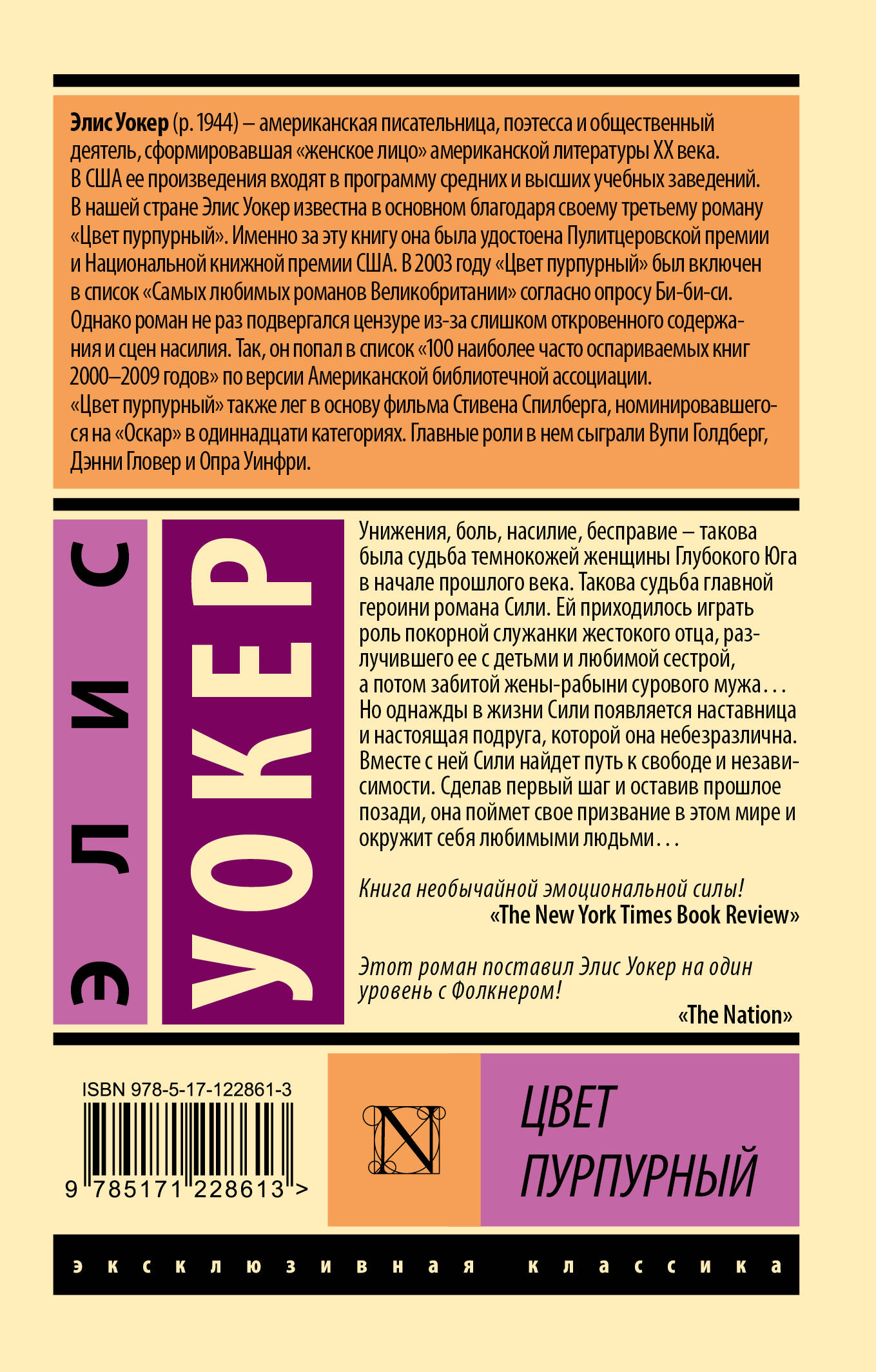 Унижения, боль, насилие, бесправие - такова была судьба темнокожей женщины Глубокого Юга в начале прошлого века. Такова судьба главной героини романа Сили. Ей приходилось играть роль покорной служанки жестокого отца, разлучившего ее с детьми и любимой сестрой, а потом забитой жены-рабыни сурового мужа… Но однажды в жизни Сили появляется наставница и настоящая подруга, которой она небезразлична. Вместе с ней Сили найдет путь к свободе и независимости. Сделав первый шаг и оставив прошлое позади, она поймет свое призвание в этом мире и окружит себя любимыми людьми…| Издательство | ИЗДАТЕЛЬСТВО "АСТ" |