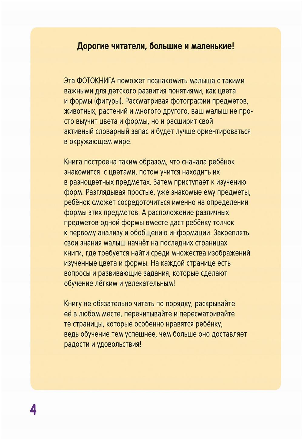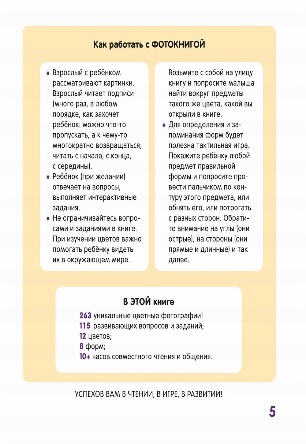 В этой яркой и интересной книге собрано более 200 фотографий, которые познакомят ребенка с миром вокруг, назовут и покажут окружающие его предметы и при этом научат различать более 10 цветов и множество форм (не только круг, квадрат, треугольник, но и многие другие). На каждой странице ребенка ждут интересные вопросы и задания, развивающие логику, внимание, расширяющие кругозор.| Издательство | РОСМЭН |