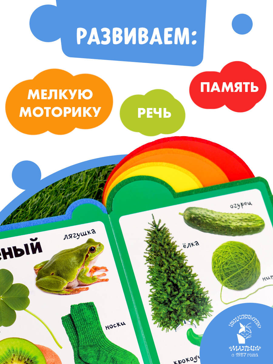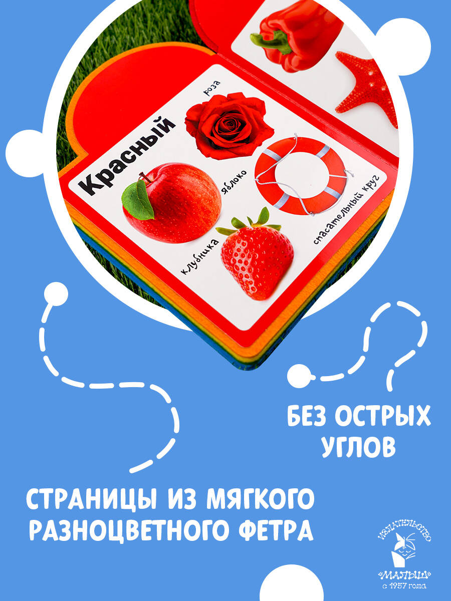 Встречайте иновационные книжки для самых маленьких! Читая эту книгу вместе с родителями, ребёнок научится различать основные цвета, называть их, подбирать предметы на каждый цвет. Фотографии с подписями позволяют наглядно показать предметы, ассоциировать слово с изображением. Книга поможет развить кругозор, словарный запас, речевые навыки и мелкую моторику. А мягкие яркие фетровые вставки между страницами подарят новые тактильные ощущения, сделают занятия более интересными и не повредят маленькие пальчики.| Издательство | Издательство "АСТ" |