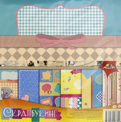Набор для детского творчества. Набор цветной бумаги "Скрапбукинг" 12 листов. В наборе 12 листов размером 295х295 мм, плотность бумаги 150 г/м2. На бумаге с двух сторон напечатан разные рисунки. В каждом наборе 12 дизайнов (по 2 листа каждого), объединенных одной темой. В ассортименте 6 тем: Наш малыш, Романтика, Путешествия, Природа, Отпуск, Свадьба. Бумага предназначена для декорирования альбомов для фотографий, создания открыток. Упакованы в ПЭТ пакет.