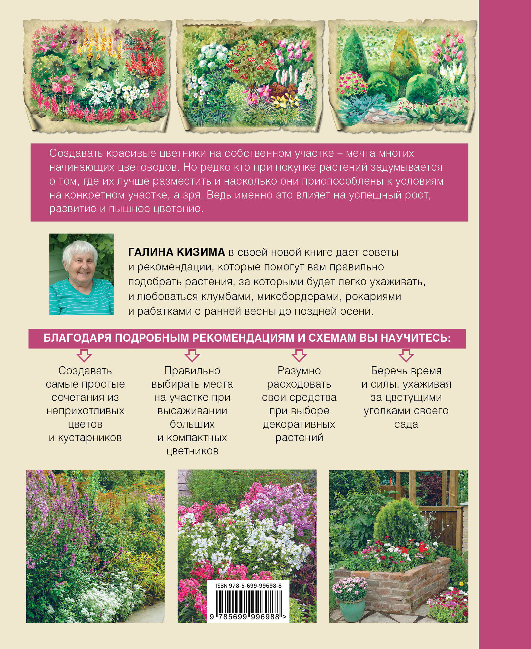 Нет такого начинающего цветовода, который бы не мечтал разбить на своем участке цветник. А лучше, конечно, десять. Но редко при покупке растений мы задумываемся о том, где их лучше разместить и насколько они приспособлены к разным условиям. Ведь именно это влияет на успешный рост, развитие и пышное цветение. Еще реже мы вспоминаем о том, сколько времени и сил понадобится на уход, полив и защиту декоративных растений от заморозков. Галина Кизима, известный питерский автор, дает советы и рекомендации, которые помогут вам правильно подобрать растения, за которыми будет легко ухаживать. Красивый цветник необязательно должен быть сложным! Убедитесь в этом, создавая по схемам клумбы, миксбордеры, рокарии и рабатки, любуясь их цветением с ранней весны до поздней осени. Благодаря подробным рекомендациям и схемам вы научитесь: - Создавать самые простые сочетания из неприхотливых цветов и кустарников. - Правильно выбирать места на участке при высаживании больших и компактных цветников. - Разумно расходовать свои средства при выборе декоративных растений. - Беречь время и силы, ухаживая за цветущими уголками своего сада.| Издательство | ООО "Издательство "Эксмо" |