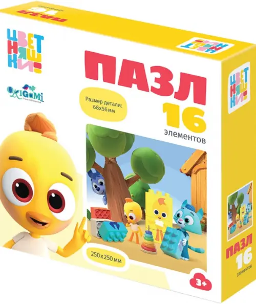 Пазл 16 элементов, основанный на любимых сюжетах мультфильма "Цветняшки" понравится любому ребенку, а сборка яркой картинки принесет радость не только малышам, но и их родителям. Соберите всю коллекцию новых пазлов!