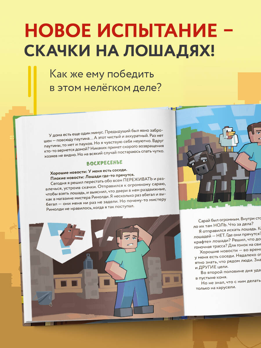 Стив - обычный школьник, который оказывается втянут в мир «Майнкрафта». Теперь ему предстоит научиться выживать в квадратном мире и стать настоящим МАСТЕРОМ скачек на лошадях! Сможет ли он справиться со всеми испытаниями и вернуться домой? Вас ждут ТОННЫ юмора, невероятные приключения и возможность окунуться в красочное путешествие с головой!| Издательство | ООО "Издательство "Эксмо" |