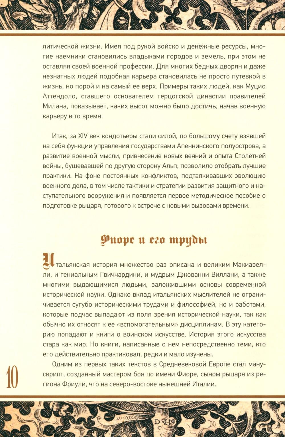 Впервые на русском языке публикуется комментированный перевод Flos Duellatorum - одного из самых ранних трактатов, посвященных боевому искусству cредневековой Европы. Манускрипту предшествует очерк, рассказывающий о его авторе, мастере фехтования Фиоре из Премариакко, жившем в конце XIV века, его судьбе и эпохе, вооружении и способах подготовки воинов. Фиоре не просто описал известные ему приемы, но и составил методику и схему обучения искусству боя - от борьбы без оружия до поединка верхом. Его труд позволяет не только составить представление о том, как действовали воины Средних веков, но и использовать книгу в качестве пособия для занятий историческим фехтованием и реконструкции европейских боевых искусств.| Издательство | Вече |