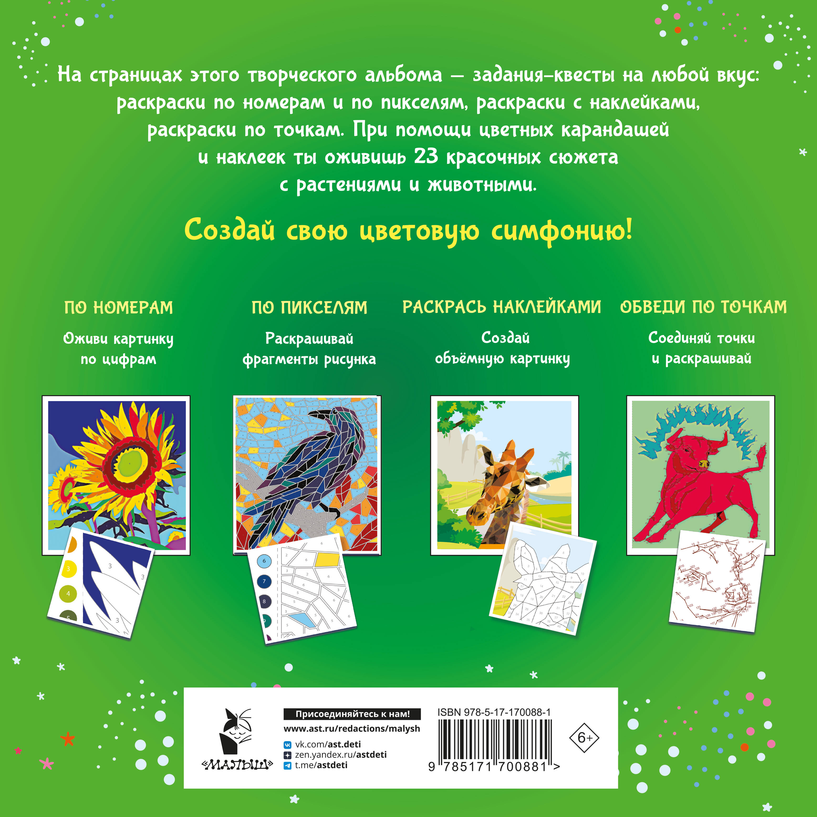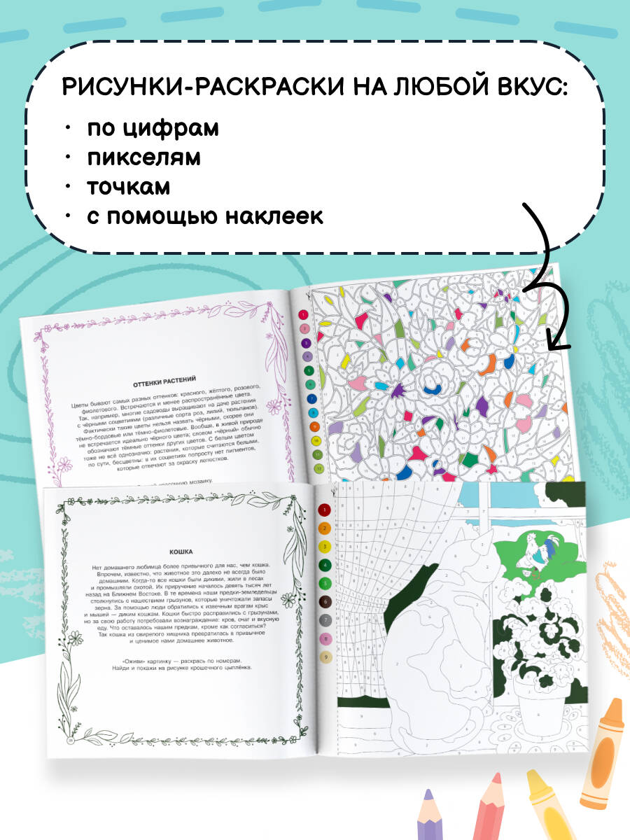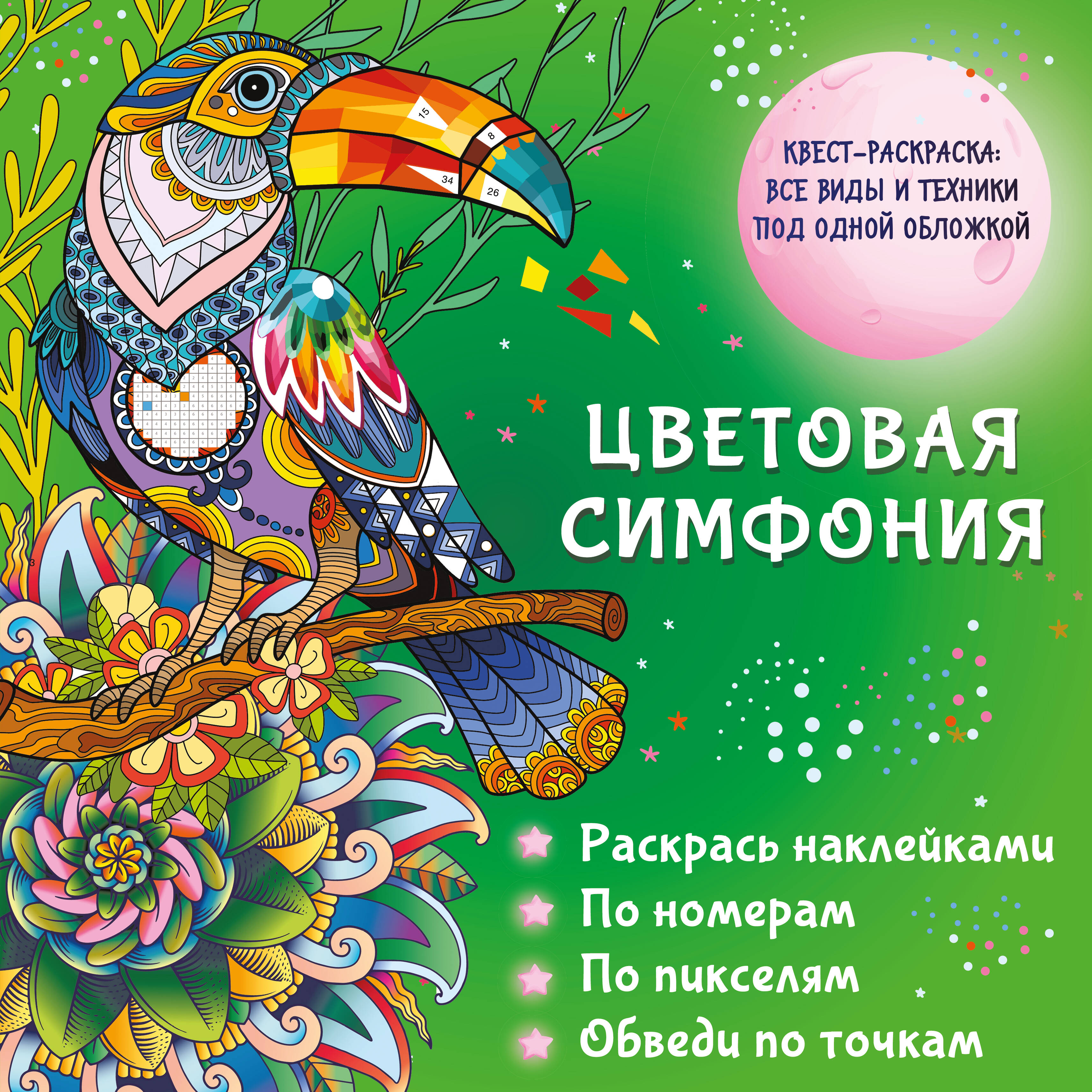 Цветовая симфония. Раскрась наклейками, по номерам, по пикселям, обведи по точкам