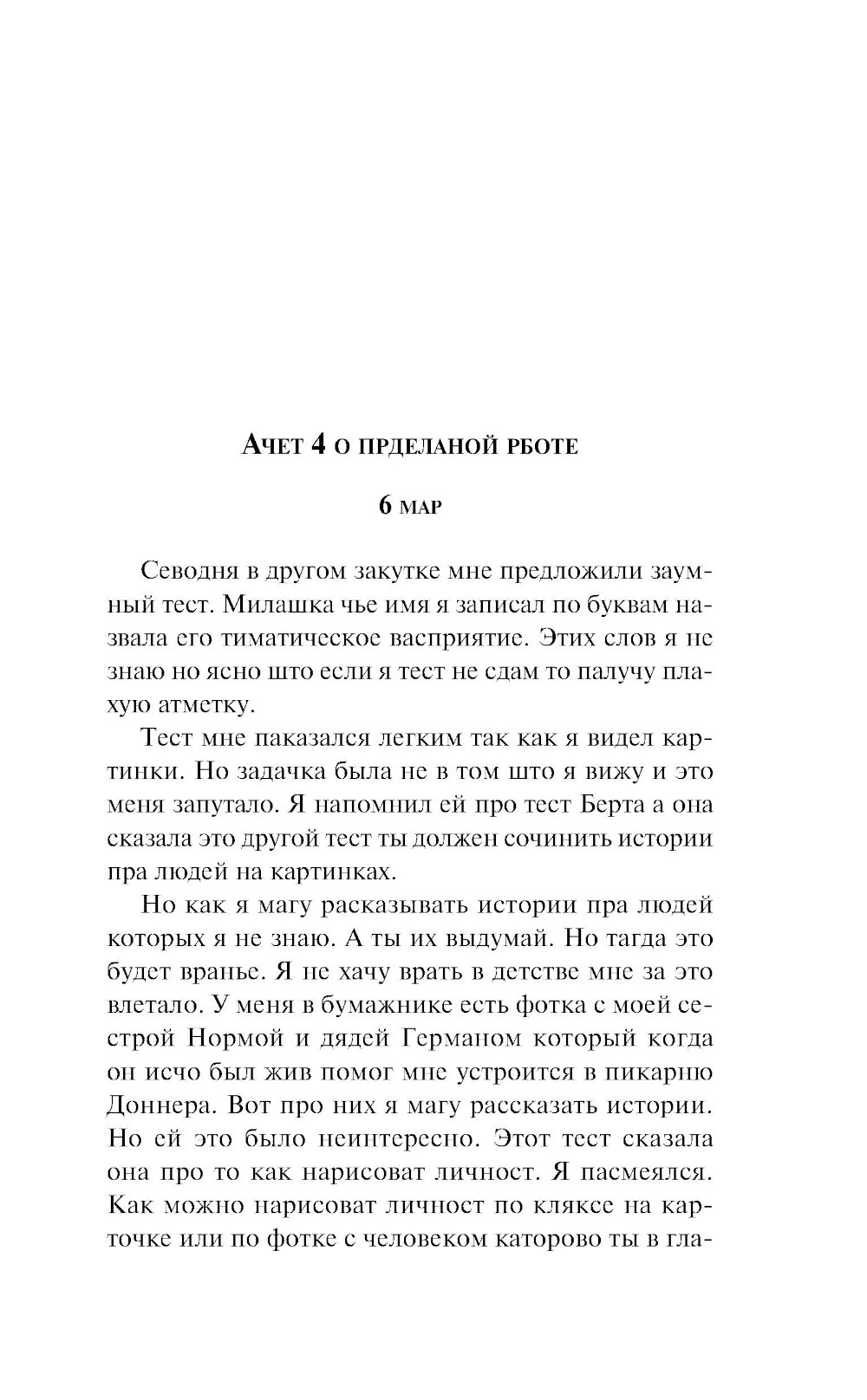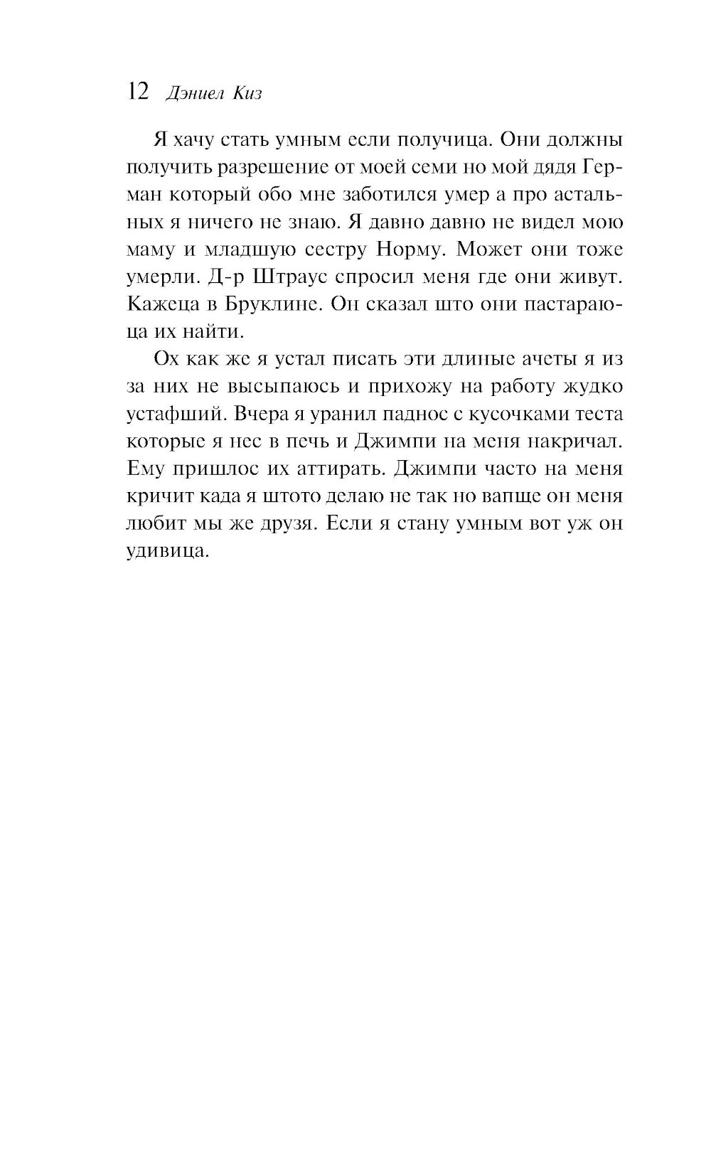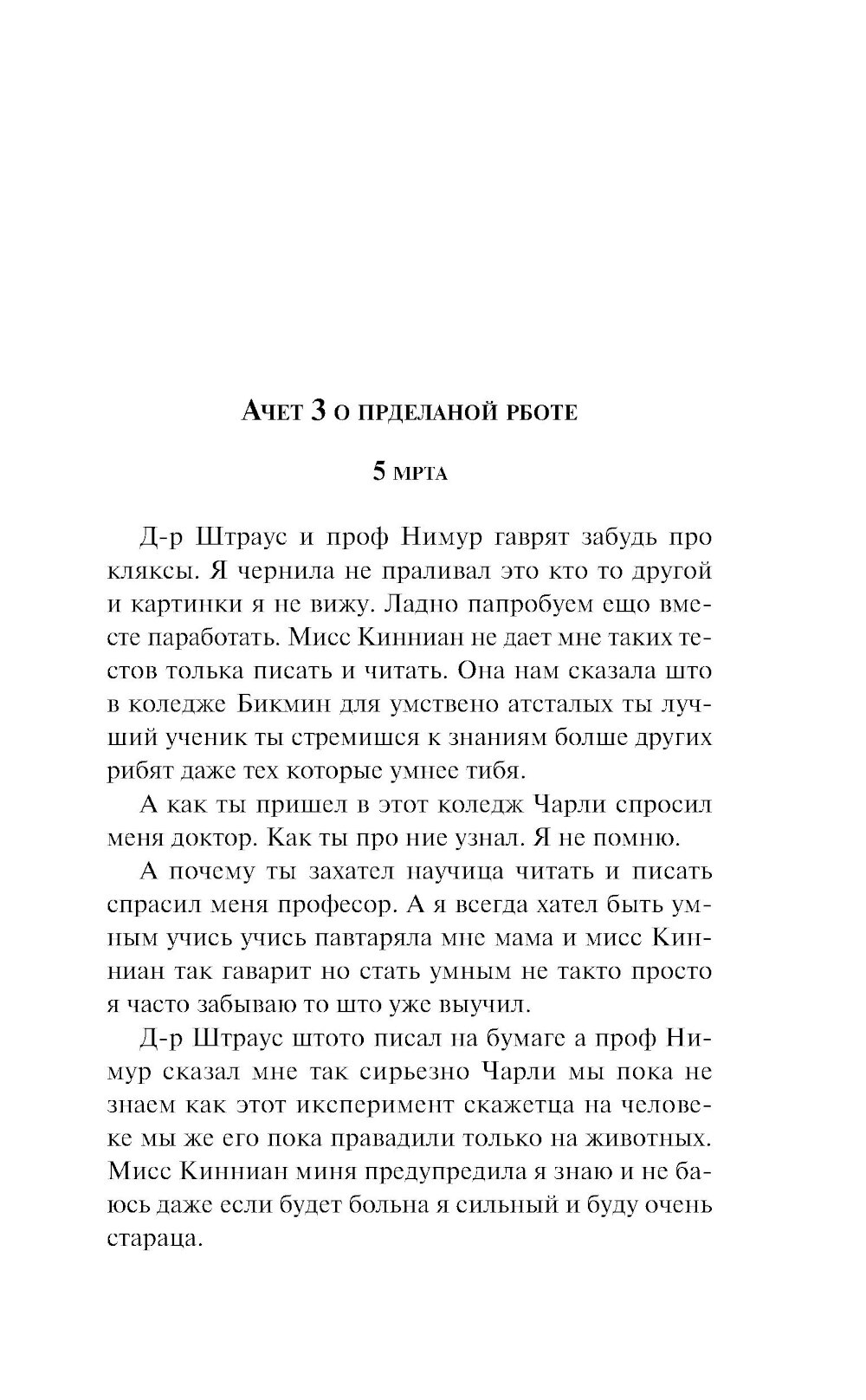 Тридцатитрехлетний Чарли Гордон - умственно отсталый. При этом у него есть работа, друзья и непреодолимое желание учиться. Он соглашается принять участие в опасном научном эксперименте в надежде стать умным... Эта фантастическая история обладает поразительной психологической силой и заставляет задуматься над общечеловеческими вопросами нравственности: имеем ли мы право ставить друг над другом эксперименты, к каким результатам это может привести и какую цену мы готовы заплатить за то, чтобы стать «самым умным». А одиноким? На вопросы, которые поднимали еще М. Булгаков в «Собачьем сердце» и Дж. Лондон в «Мартине Идене», Дэниел Киз дает свой однозначный ответ.| Издательство | Эксмо |