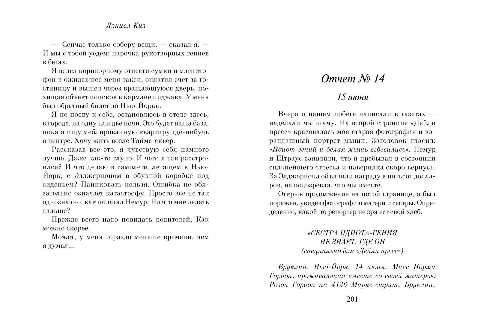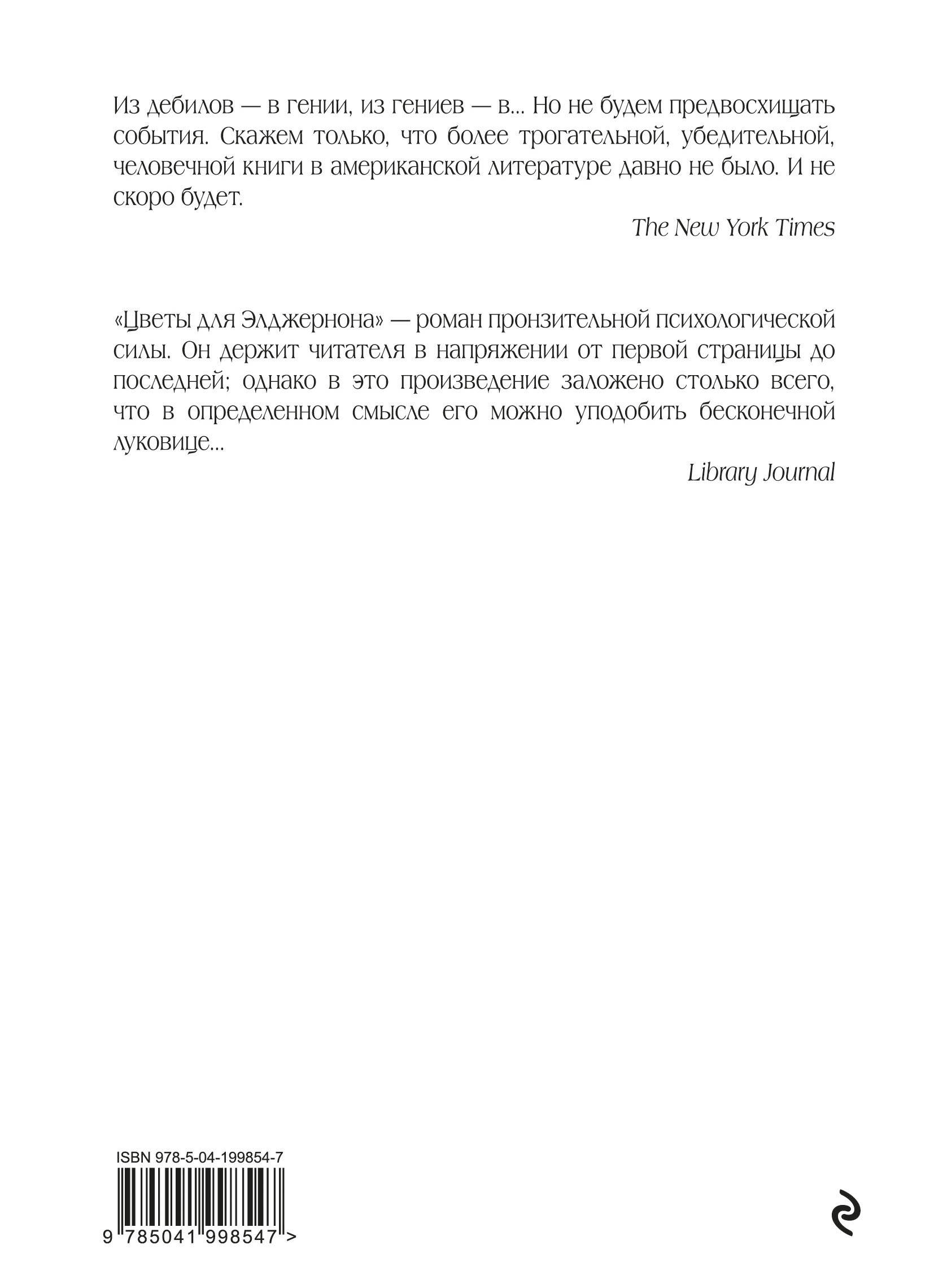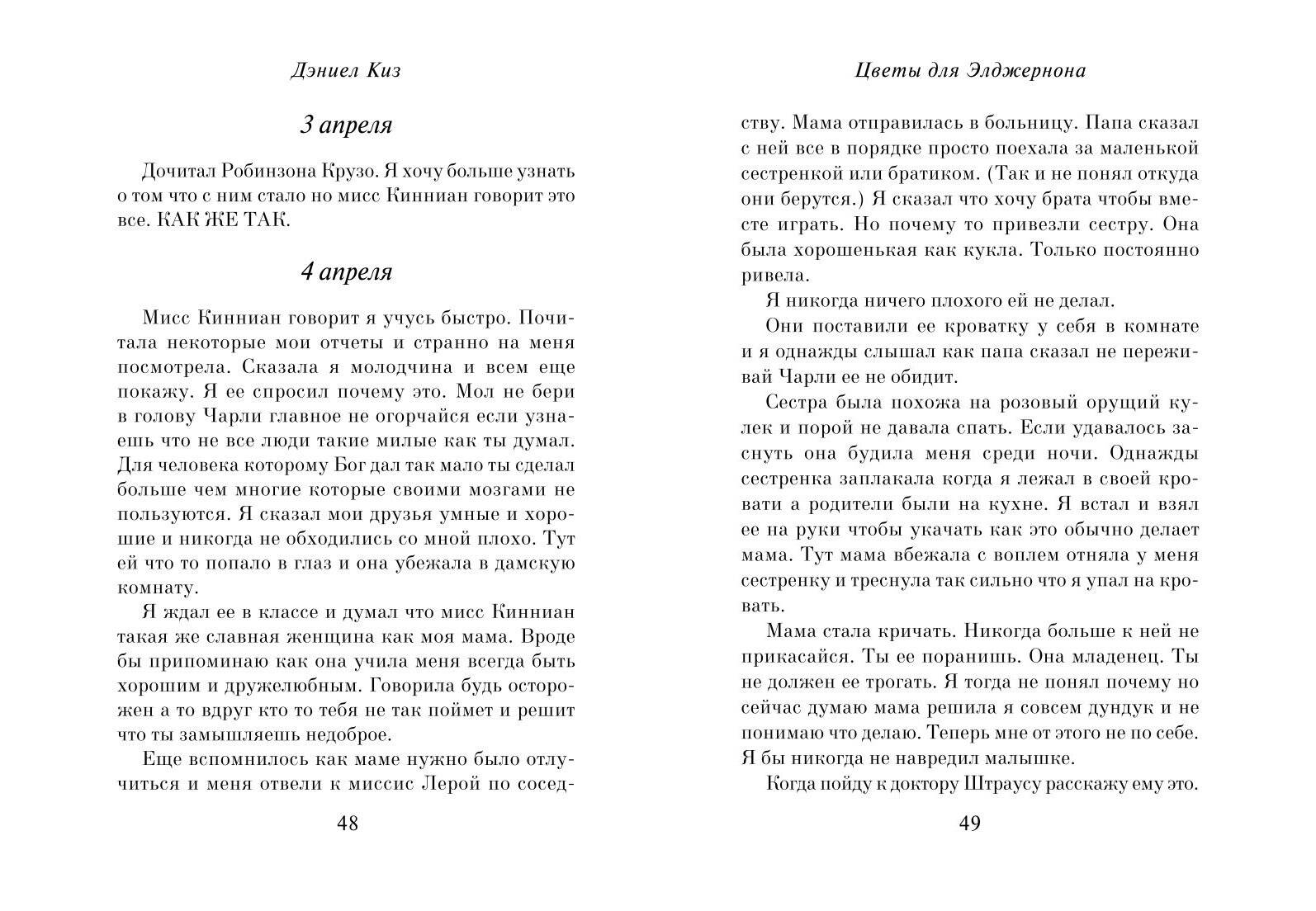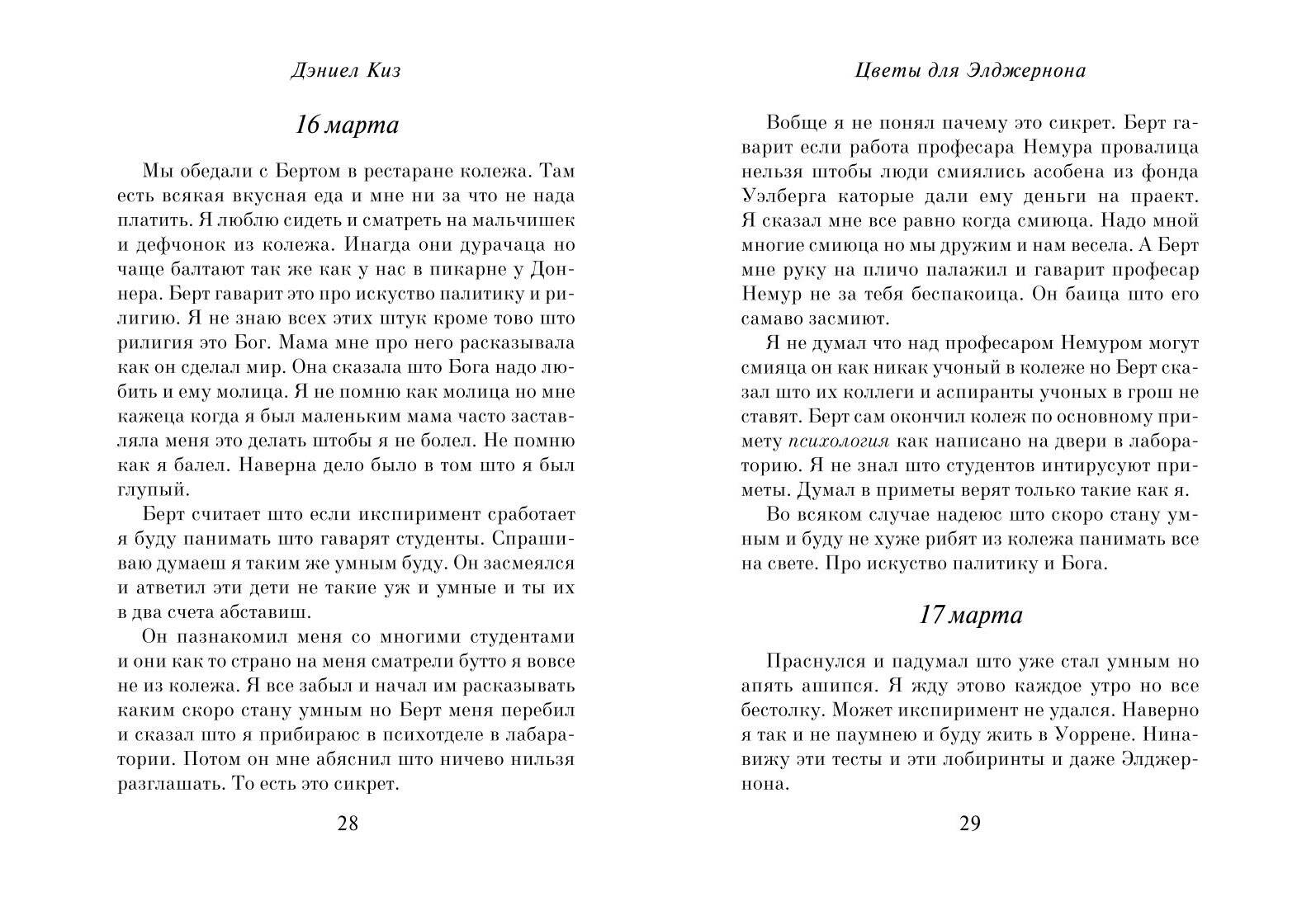 «Прежде они насмехались надо мной, презирая за невежество и тупость; теперь они ненавидят меня за познания и разум». Чарли Гордон с самого детства мечтал стать умным. Но вот беда: с рождения у него был низкий уровень интеллекта. Сейчас ему 32 года, он плохо помнит свою семью. Днем он подрабатывает в пекарне, а вечерами посещает специальную школу и не теряет надежды на исполнение своей мечты. И вот однажды ему предлагают провести операцию по повышению уровня интеллекта. И согласие на нее навсегда меняет жизнь Чарли… Книга написана в форме дневника самого Чарли, благодаря чему можно увидеть изменение не только его образа мысли, но и уровня интеллекта. Твёрдый переплёт, суперобложка, белая бумага, крупный и удобный для чтения шрифт - всё для того, чтобы провести вечер в компании одного из самых человечных произведений новейшего времени.| Издательство | ООО "Издательство "Эксмо" |