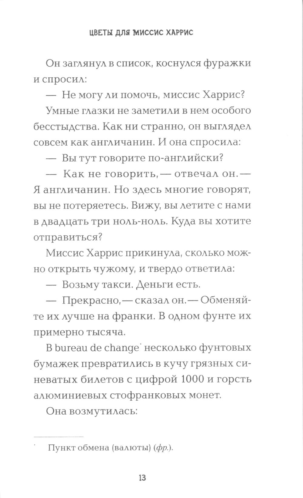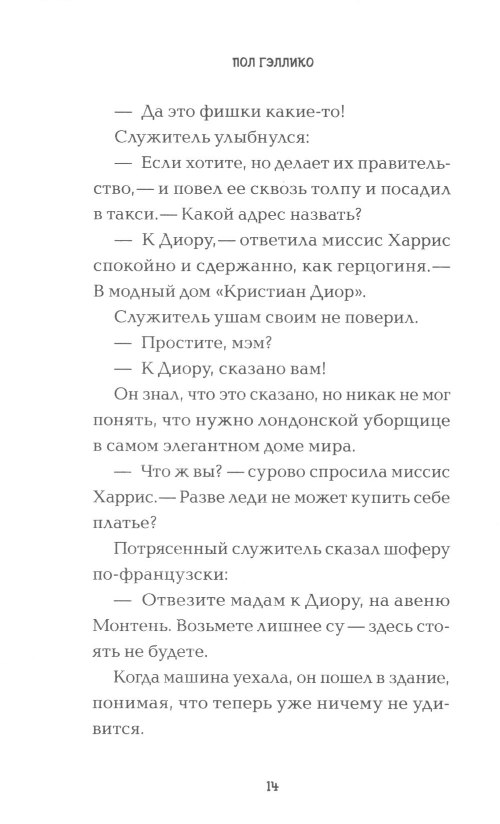 Оригинальная винтажная комедия про приключения миссис Харрис, переведенная легендарной Натальей Трауберг. Миссис Харрис - уборщица из Лондона, которая искренне верит в добрых людей и разрешает себе мечтать. Так почему бы ей не намечтать себе настоящее платье от Диора? Накопить деньги и махнуть в Париж! И кто сказал, что уборщица недостойна роскошной жизни? Главное, поверить в себя и следовать за мечтой! А мир, действительно, полон добрых людей и красоты. Книга также выходила в переводе Павла Вязникова под названием «Миссис Харрис едет в Париж».| Издательство | Livebook (Лайвбук) |