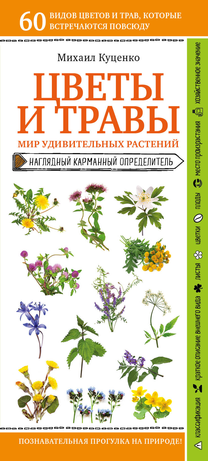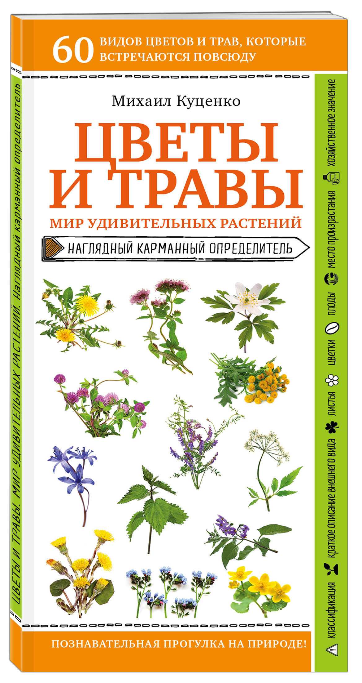 Любители природы, увлеченные натуралисты оценят этот карманный определитель полевых цветов и трав, которые встречаются в городских парках, лесах, полях и рядом с загородными участками. Удобный наглядный гид познакомит вас с 60 видами самых распространенных в средней полосе России растений. Вся полезная информация о важных особенностях внешнего вида, лекарственных свойствах, местах произрастания и сроках цветения представлена в четко структурированном и понятном виде. Оригинальная конструкция обложки: клапаны-раскладушки с двух сторон, на которых представлены цветные фотографии всех упоминающихся в книге видов.| Издательство | ООО "Издательство "Эксмо" |