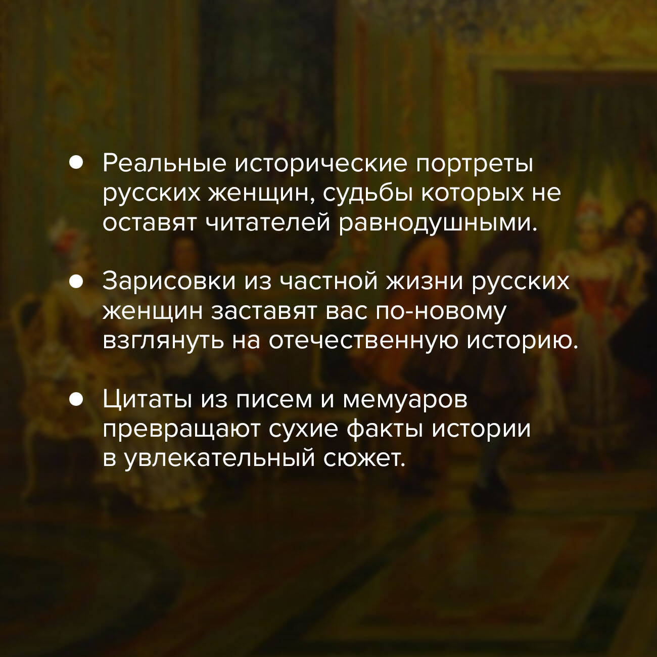 Василий Гавриленко, историк, писатель, журналист и автор популярного блога на Дзене, расскажет о судьбах русских женщин, которые перенесут вас сквозь слой времени в саму жизнь, в реальные исторические события от Древней Руси до заката Российской империи. История долгое время была сосредоточена вокруг мужчин. Но времена меняются, и жизни крестьянок, купчих и дворянок рисуют нам истинную русскую историю. Эта книга не оставит вас равнодушным. Ведь на темном полотне насилия, жестокости и грубости женской доли лучше всего видны настоящее благородство, дружба и любовь. Жизни, похожие на сценарии фильмов, драмы, которые, кажется, невозможно пережить. Счастливая любовь и благородные поступки, дающие надежду на лучшее.
