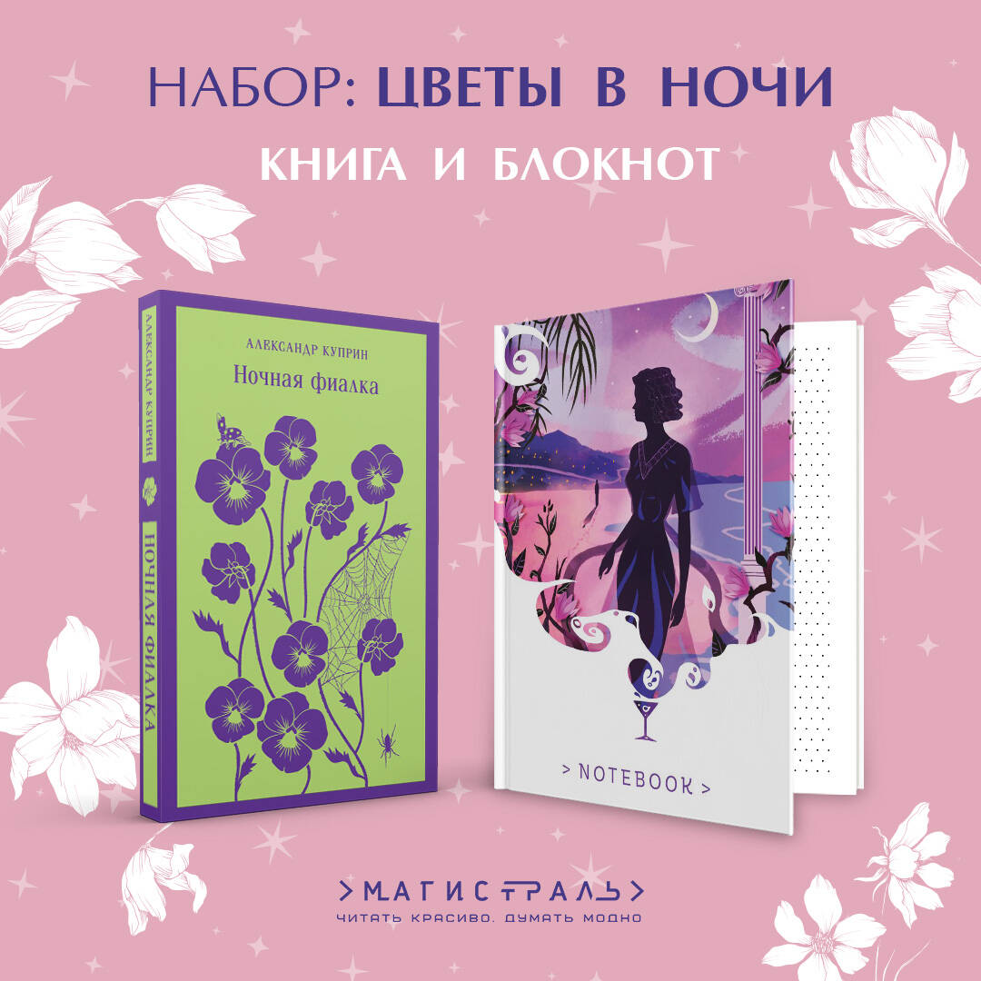 Набор для тех, кто предается мечтаниям в ночи! Сборник рассказов Александра Куприна «Ночная фиалка» в суперпопулярной серии «Магистраль» и блокнот в точку «Ночь нежна» в покет-серии «Белая птица». В наборе: - Книга Александра Куприна «Ночная фиалка» в серии «Магистраль. Главный тренд». - Блокнот. «Белая птица. Ночь нежна» (192 стр., в точку, интегральный).