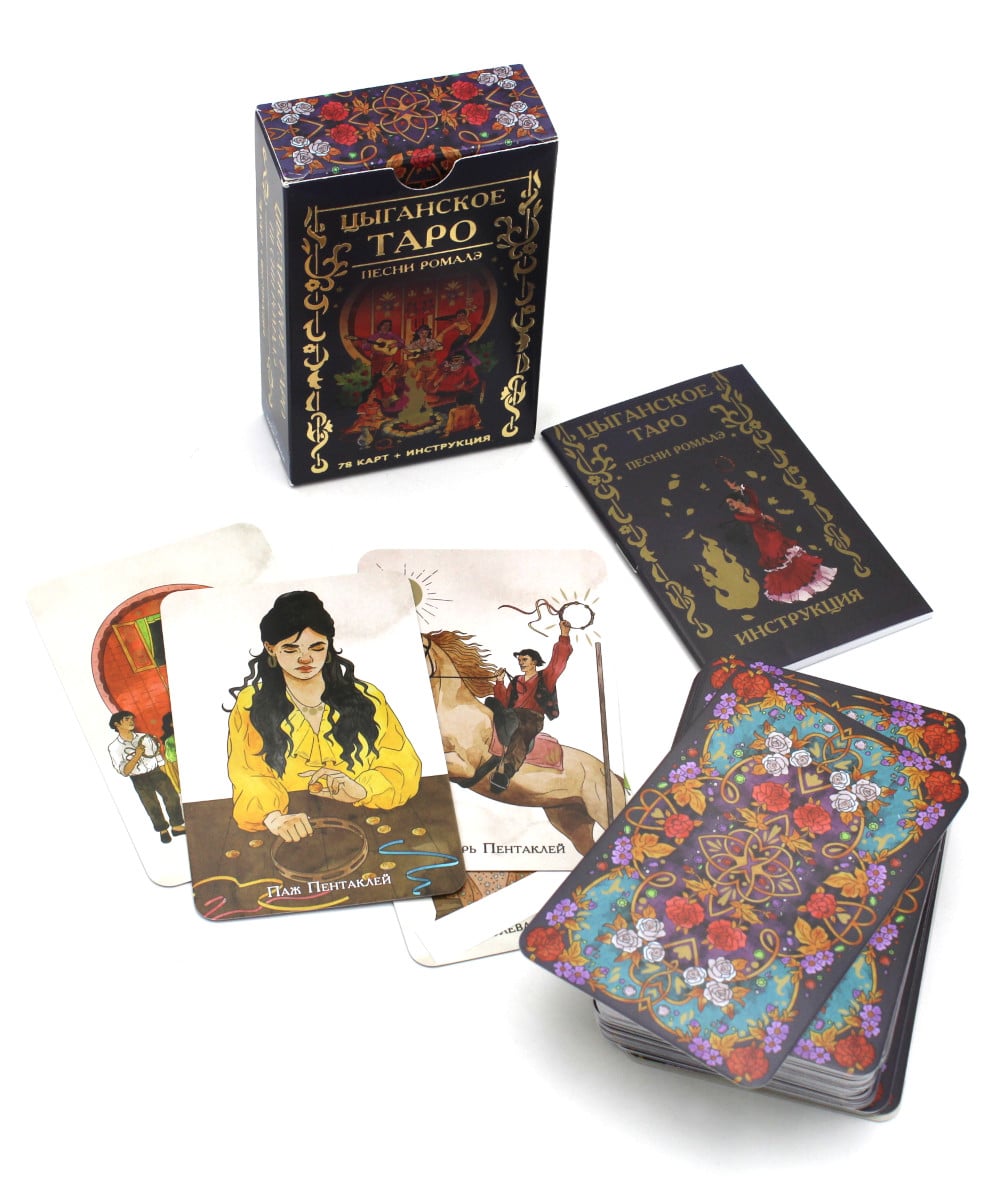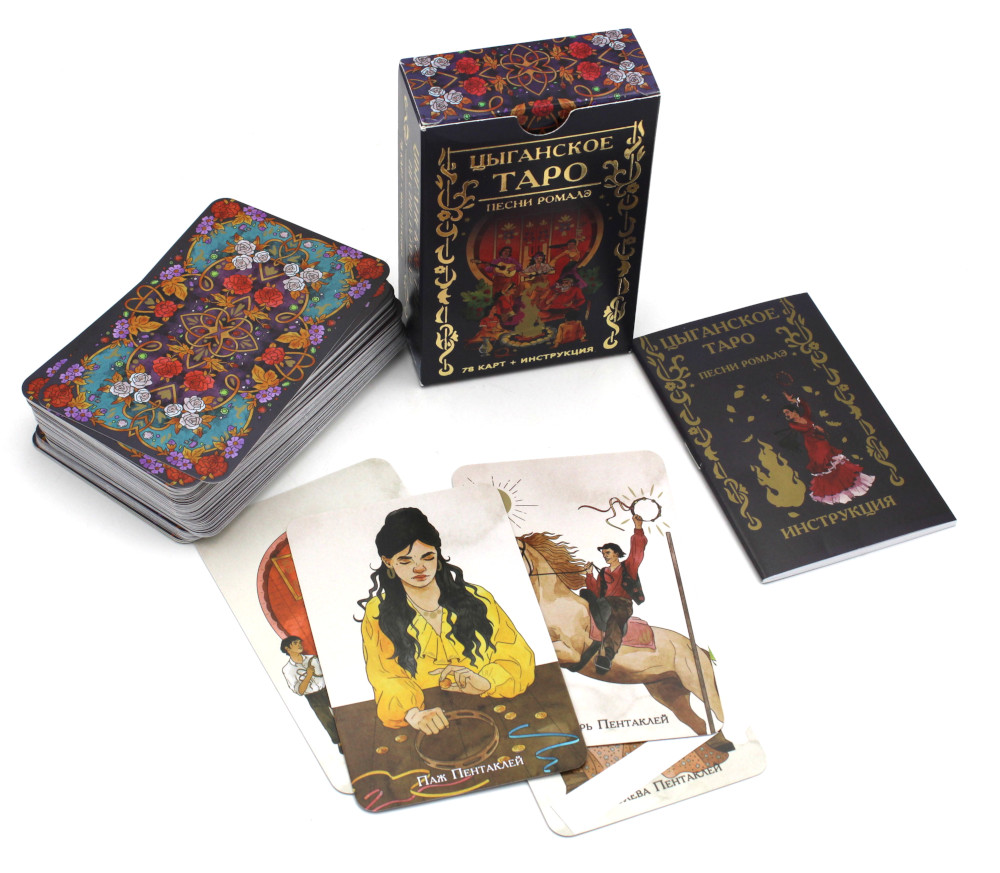 «Цыганское таро. Песни Ромалэ» станет вашим путеводителем по загадочному миру цыган. Каждая карта этой колоды является своего рода песней, рассказывающей удивительную историю героев об их непростой жизни. Вы познакомитесь с Баро и его женой, побываете на Сэндо - цыганском суде, станете свидетелем похищения невесты из её табора. И недаром говорят, что с цыганами нужно вести себя осторожнее, ведь они не понаслышке знают, что такое колдовство и магия.| Издательство | Издатель А.Г.Москвичев |