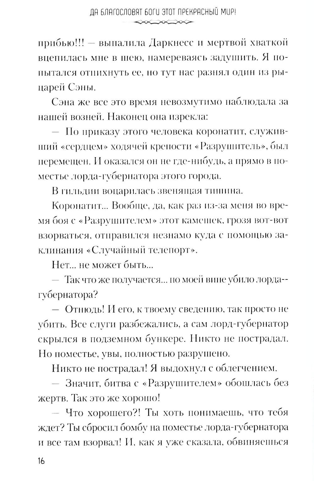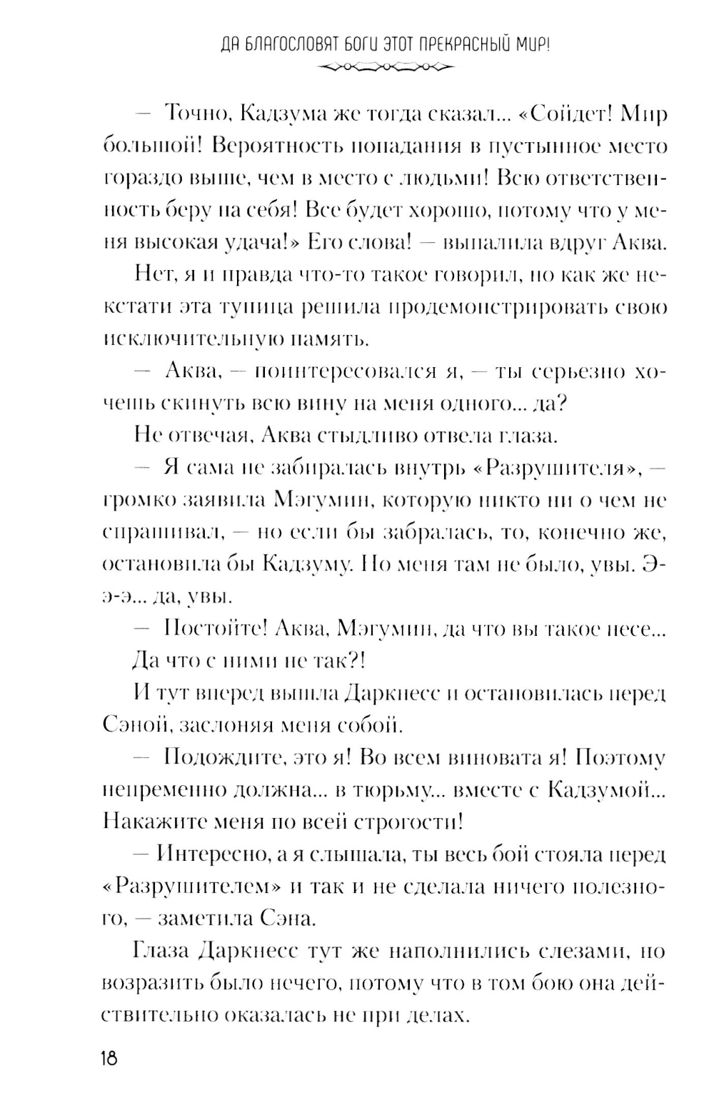 Сколько добра ни делай, а все выйдет боком. Кадзума спасает город Аксель от генерала армии короля демонов и ходячей крепости «Разрушитель», а его все равно хотят отдать под суд, чтобы после казнить! Причем соратницы как будто не пытаются его защитить, а только стараются приблизить печальный исход. Отсрочка от казни приносит новые беды: из ближайшего подземелья лезут неизвестные монстры, и королевский прокурор снова обвиняет во всем Кадзуму! Как же избежать несправедливого суда и следствия?