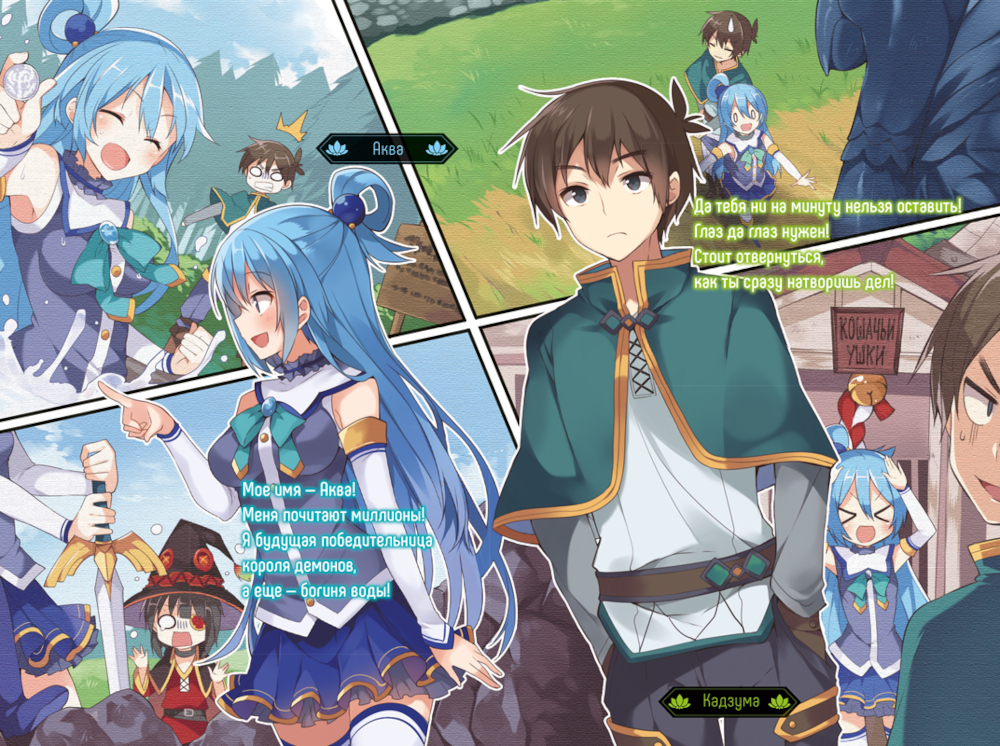 Вернувшись после отпуска, Кадзума думает немного передохнуть, но не тут-то было! Юн-Юн приходит подозрительное письмо из деревни алых магов, где говорится, что армия короля демонов собирается напасть на поселение. Надежды нет, Юн-Юн - последняя выжившая, ее отца убили… Или все это - дурацкий розыгрыш? Чтобы выяснить наверняка, Кадзума собирает свою команду непутевых воительниц и отправляется спасать деревню, где живут одни чудаки и творится самая невообразимая магия.| Издательство | ЭксЭл Медиа |