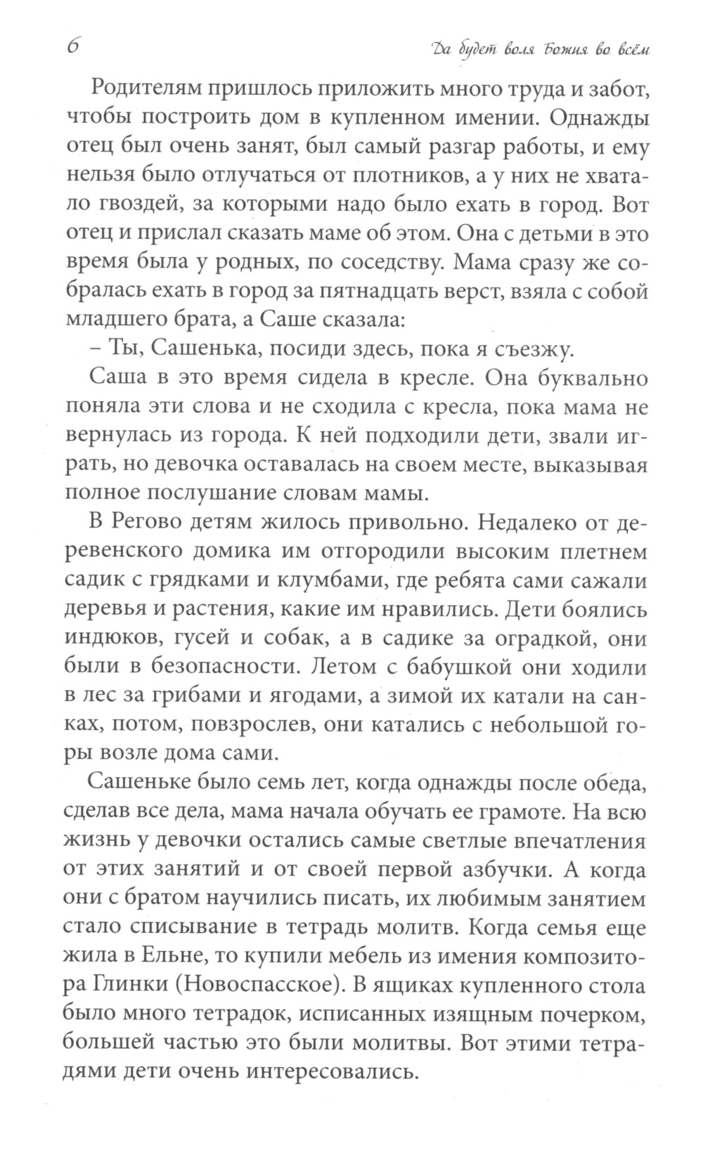 Книга «Да будет воля Божия во всём» рассказывает о наиболее значимых событиях из жизни монахини Амвросии (Александры Дмитриевны Оберучевой), врача по образованию и великой подвижницы Божией по устроению своей души. На время ее земной жизни пришлись самые страшные страницы истории России прошлого века - Первая мировая война, революция, гражданская война, годы гонений на Церковь, Великая Отечественная война. Свой нелегкий жизненный путь матушка Амвросия прошла, отдав всецело себя Богу и следуя главной евангельской заповеди, - с любовью и заботой относиться к окружающим. Автор-составитель бережно сохранила стиль дневника матушки Амвросии. Книга будет интересна как детям, так и взрослым.| Издательство | Данилов мужской монастырь |